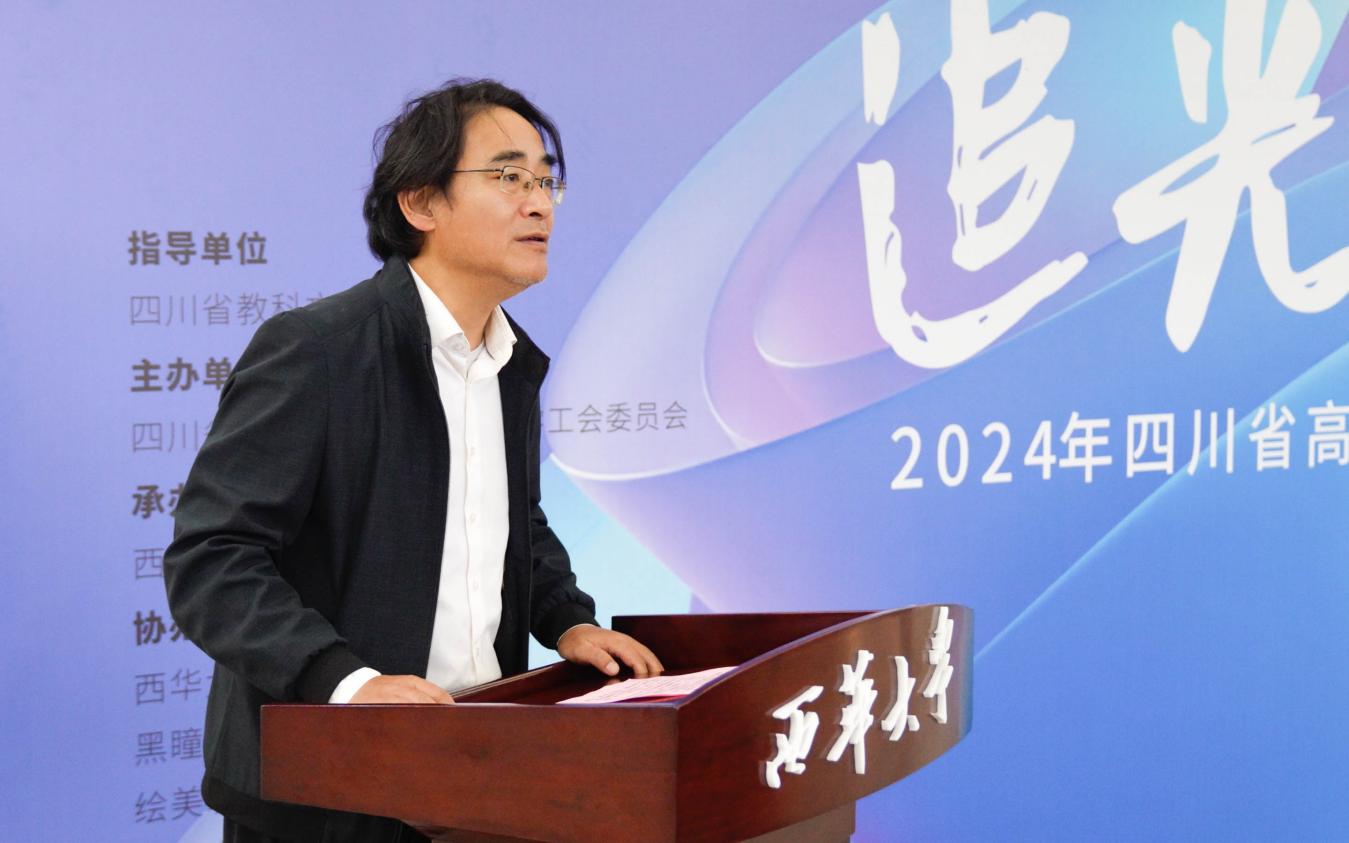 开幕式上,副校长费凌代表学校致辞,热烈欢迎到场的师生朋友们,并对所有获奖、入选的师生表示诚挚的祝贺,向本次活动的组织者和辛勤付出的工作人员表示敬意。他表示,以“追光校园,定格岁月”为主题,通过镜头展现四川高校师生在求知、教学与科研中奋发向上的精神风貌。获奖(入选)作品蕴含着对时代发展的深刻思考和情感表达,为校园生活增添了亮丽色彩。近年来,tyc41183太阳成集团积极贯彻落实国家教育方针,实施学校美育浸润行动,不断深化美育教育工作,构建了“五美融合”育人路径,实现了“美育+思政+实践”的育人体系。今后,学校将继续加强与社会各界的互动合作,推动更多更好的艺术文化交流活动开展,营造多元化、特色化的校园文化浓厚氛围。