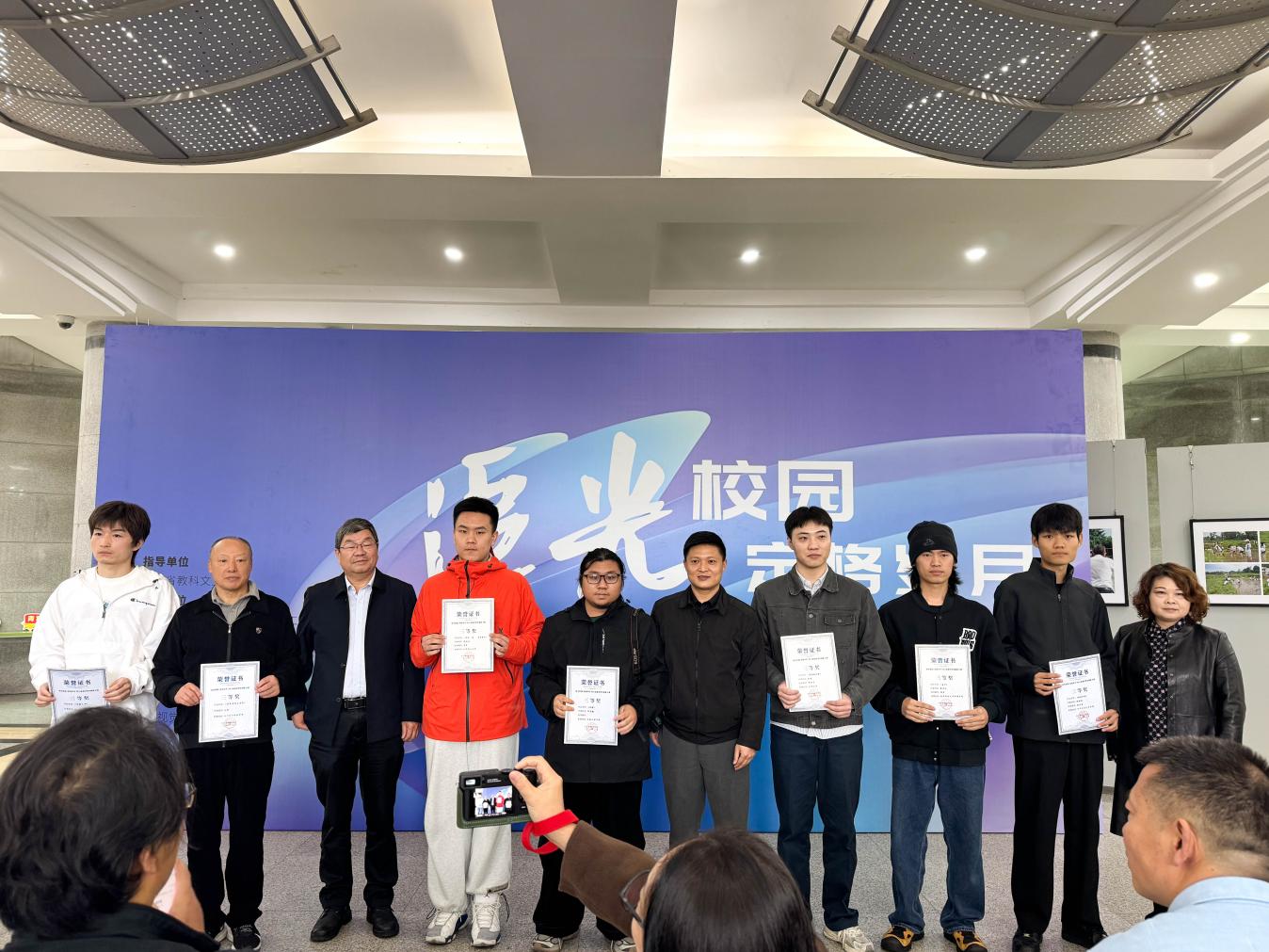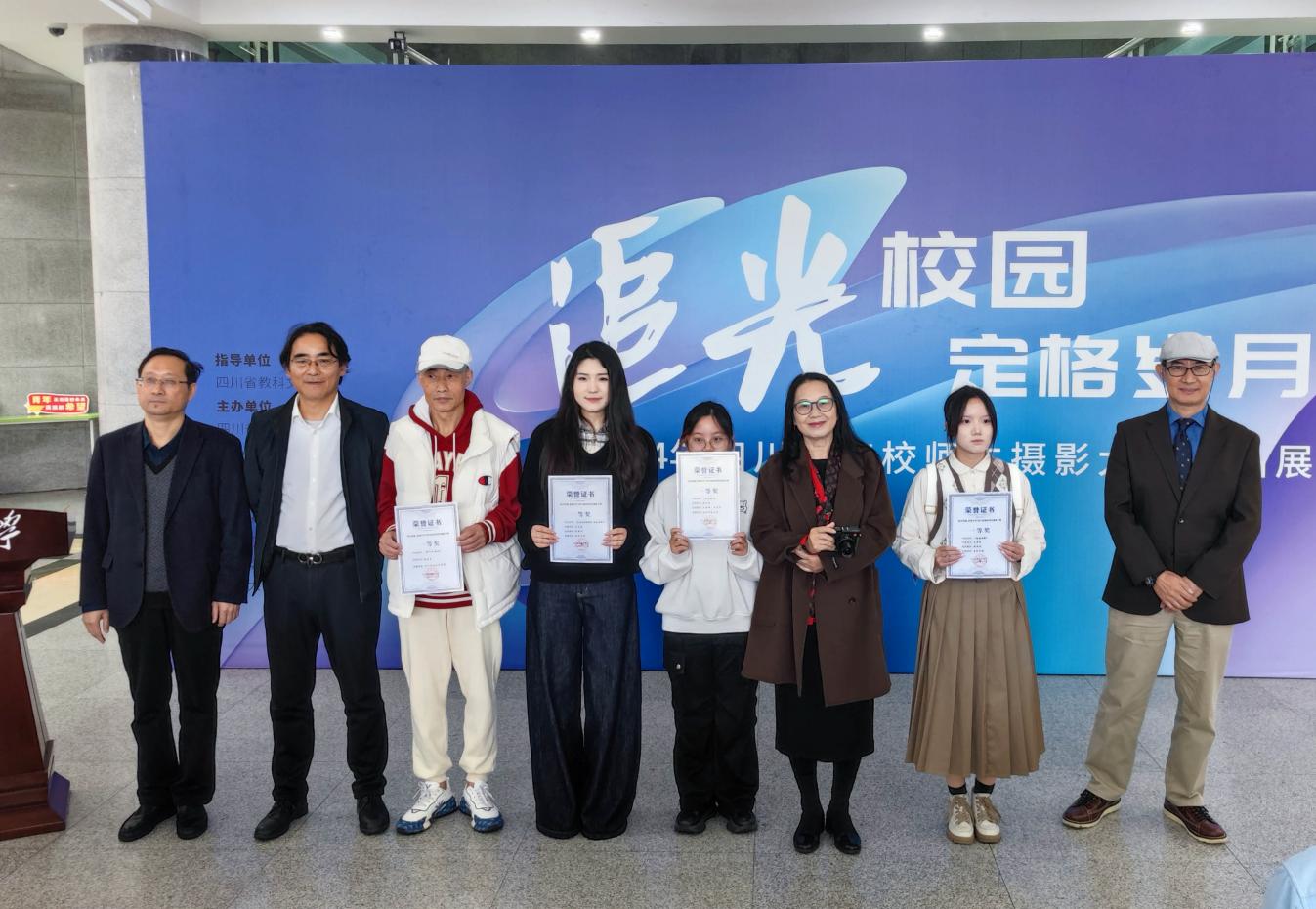 颁奖仪式中,19名获奖作品作者代表一一登台领奖。获奖作品内容丰富,涵盖了校园风光、课堂教学、学术科研、师生互动等多个场景主题,展示了四川高校师生丰富多彩的校园生活与精神面貌。每一幅作品都凝聚了创作者对教育事业的深情与对社会变化的敏锐洞察,充分展现了现代教育工作者和学子的青春气息和奋斗精神。