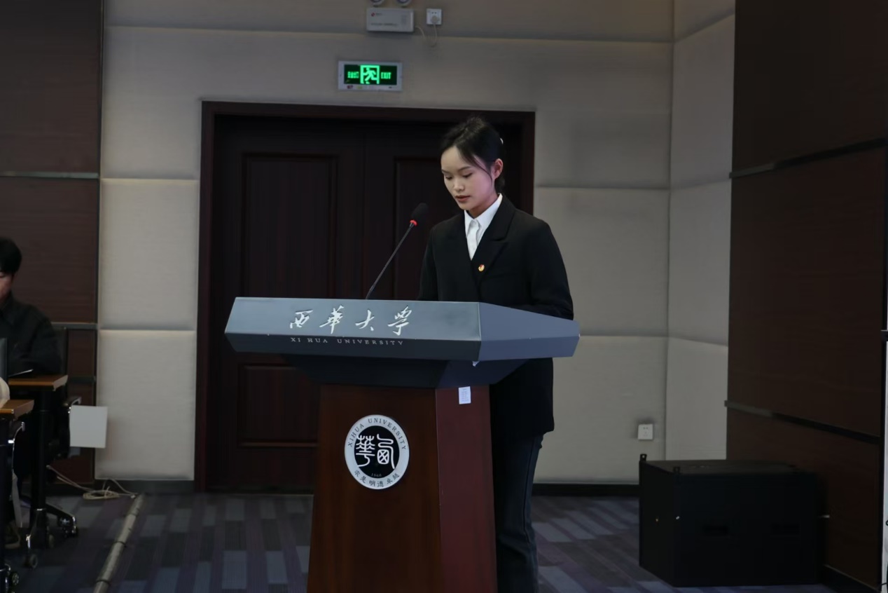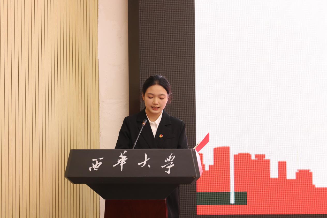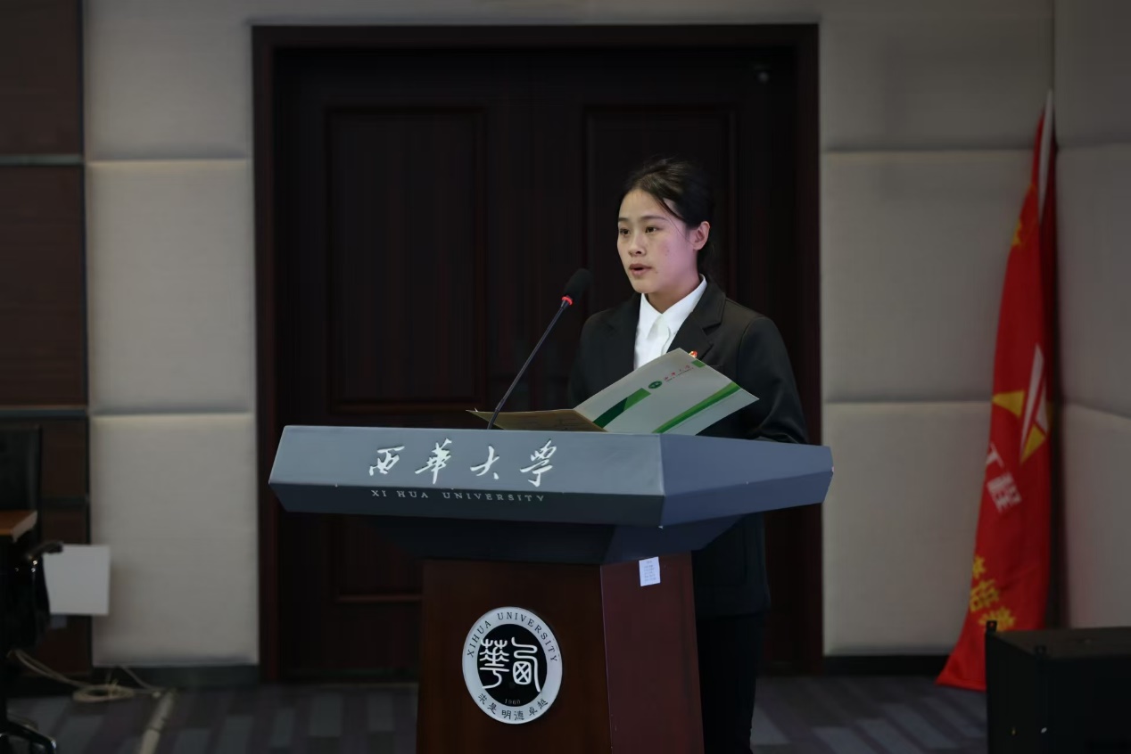 郫都校区第四期青马工程卓越班学员代表杨梦婷作表态发言