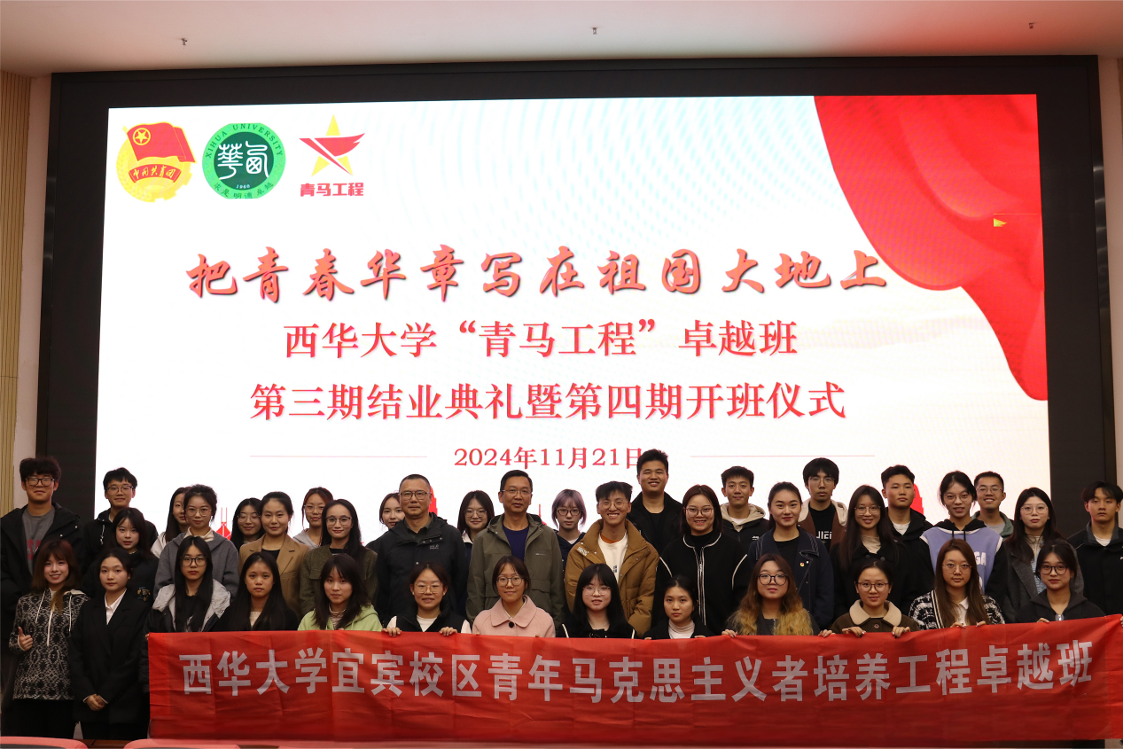 为深入学习贯彻习近平新时代中国特色社会主义思想,贯彻落实党的二十届三中全会精神,着力培养一批坚定的马克思主义坚定信仰者、积极传播者、忠实践行者,11月21日,学校在办公楼101会议室举行tyc41183太阳成集团“青马工程”卓越班第三期结业典礼暨第四期开班仪式。本次开班仪式首次在郫都、宜宾两校区同步联动举行。校党委副书记朱兴华,党委组织部、党委宣传部、党委学生工作部、党委研究生工作部、校团委、马克思主义学院负责人和理论导师代表出席仪式,学校第三、第四期“青马工程”卓越班成员共同参加此次活动。