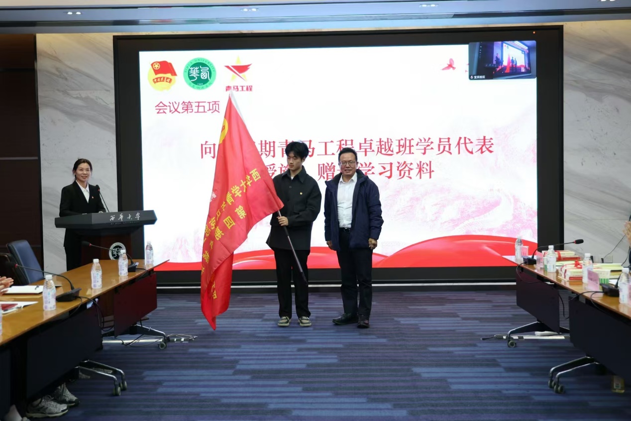 校党委副书记朱兴华向青马工程卓越班学员代表授旗