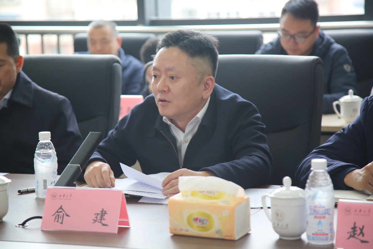 11月27日,致公党成都市委会主委、成都市政协副主席梁伟,成都市工商联主席、成都市总商会会长俞建携用人单位、直属商会代表来校调研。座谈会在招生与就业处421会议室举行,校党委副书记朱兴华,副校长邵永波出席会议。本次调研座谈会由学校招生与就业处处长杨洪主持。