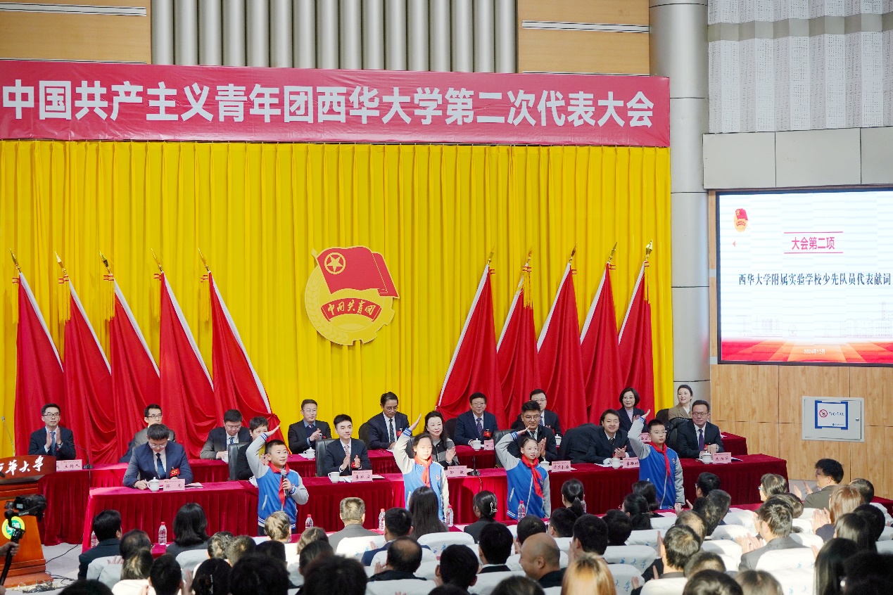 李路桥代表团市委讲话,鼓励学校共青团工作服务广大青年全面发展。电子科技大学团委书记陈龙代表兄弟高校团委向大会致辞。校工会常务副主席王大清代表学校群团组织致贺词。tyc41183太阳成集团附属实验学校少先队员代表向大会献词。