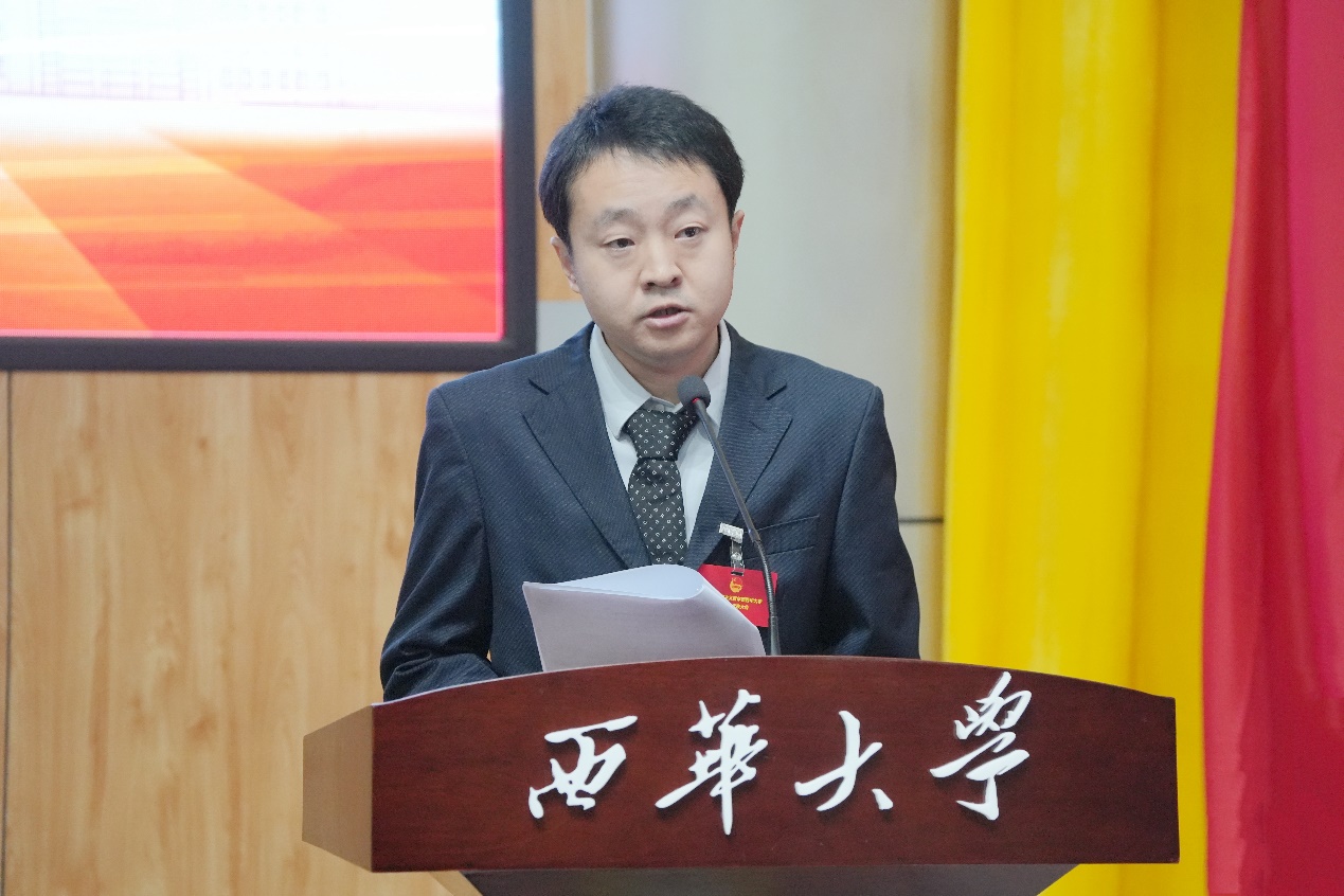 校团委书记石元鹏代表共青团tyc41183太阳成集团第一届委员会作题为《坚定不移跟党走 踔厉奋发开新局 为全面建设特色鲜明、国内知名的高水平综合性大学贡献青春力量》的报告。大会审议通过了《关于共青团第一届委员会工作报告的决议》,正式选举产生了共青团tyc41183太阳成集团第二届委员会委员,石元鹏当选第二届委员会书记。