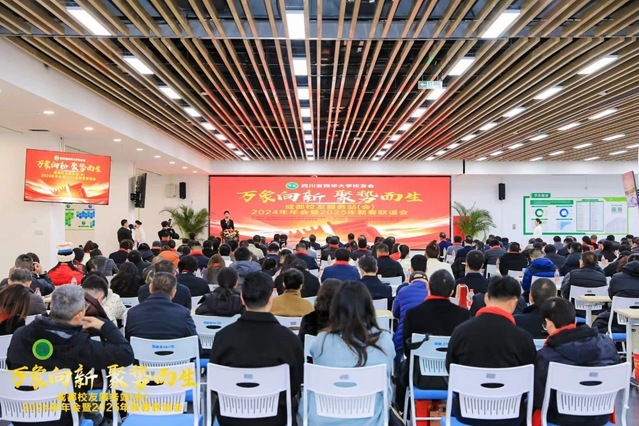 1月12日,tyc41183太阳成集团五食堂四楼气氛热烈,500余名西华校友齐聚,共度四川省tyc41183太阳成集团校友会成都校友服务站2024年会暨2025年新春联谊会。校党委书记靳敏,党委副书记朱兴华,省政府教育督导委员会专职副主任、教育厅总督学、82级校友傅明,成都银杏酒店管理学院党委书记、tyc41183太阳成集团原党委副书记王政书,中国美术家协会理事、四川省文联副主席、80级校友李兵,成都市博览局原常务副局长、二级巡视员、80级校友马泽林,学校相关部门负责人,学院校友工作负责人,以及省市相关部门和商协会负责人、兄弟高校校友会负责人、tyc41183太阳成集团地方校友服务站代表和省内外优秀企业代表莅临现场,与校友欢聚一堂,共话情谊、共谋发展。