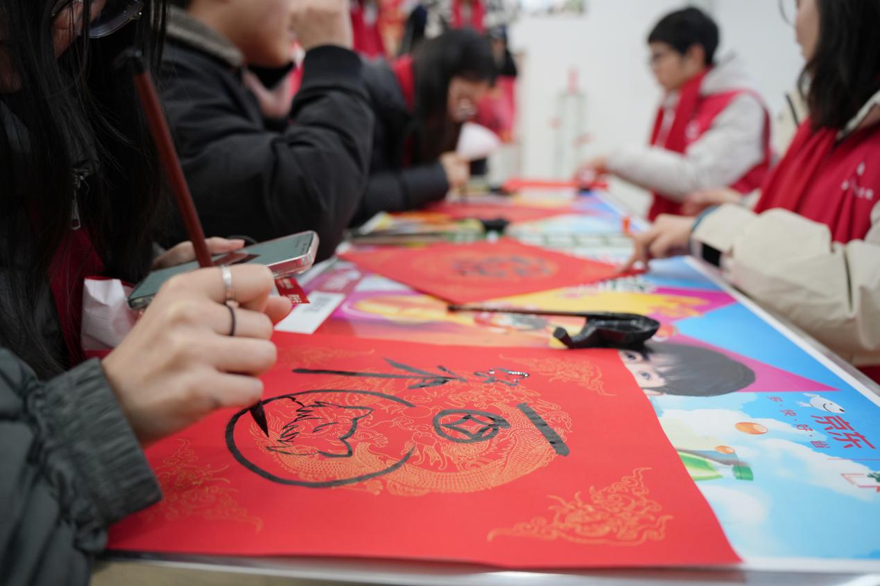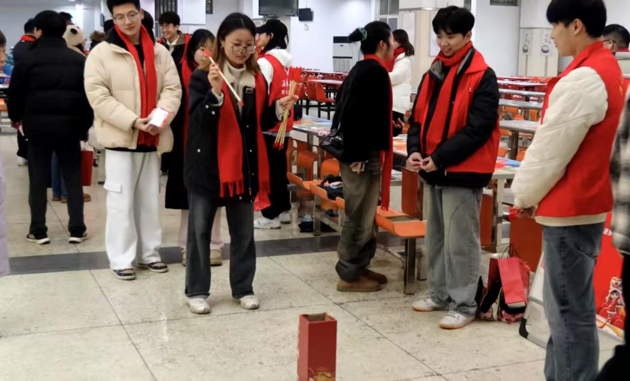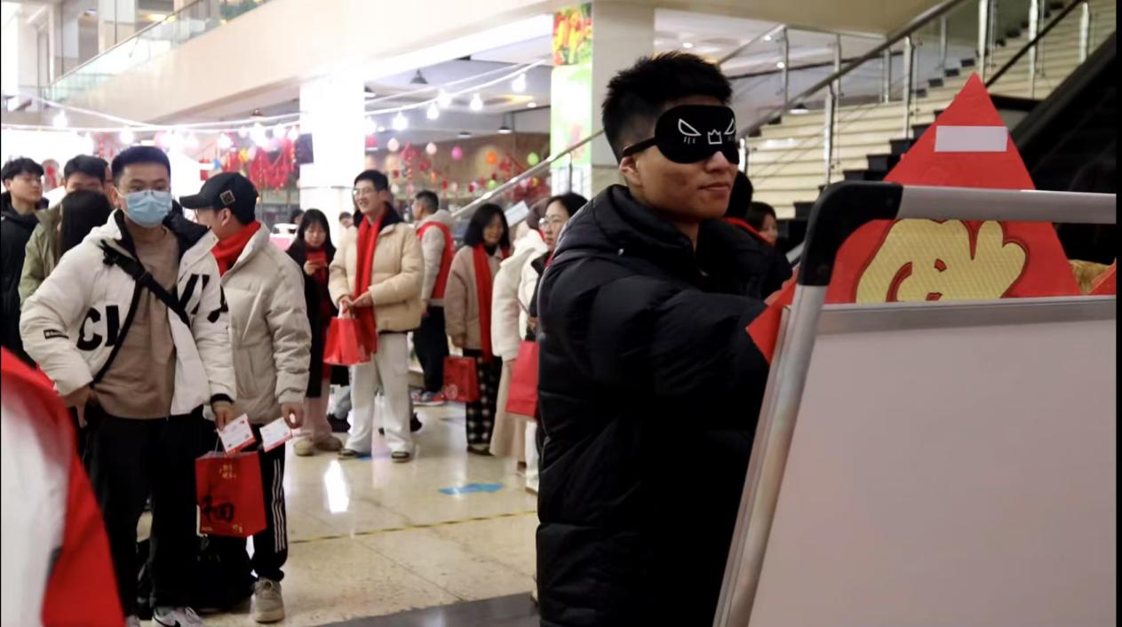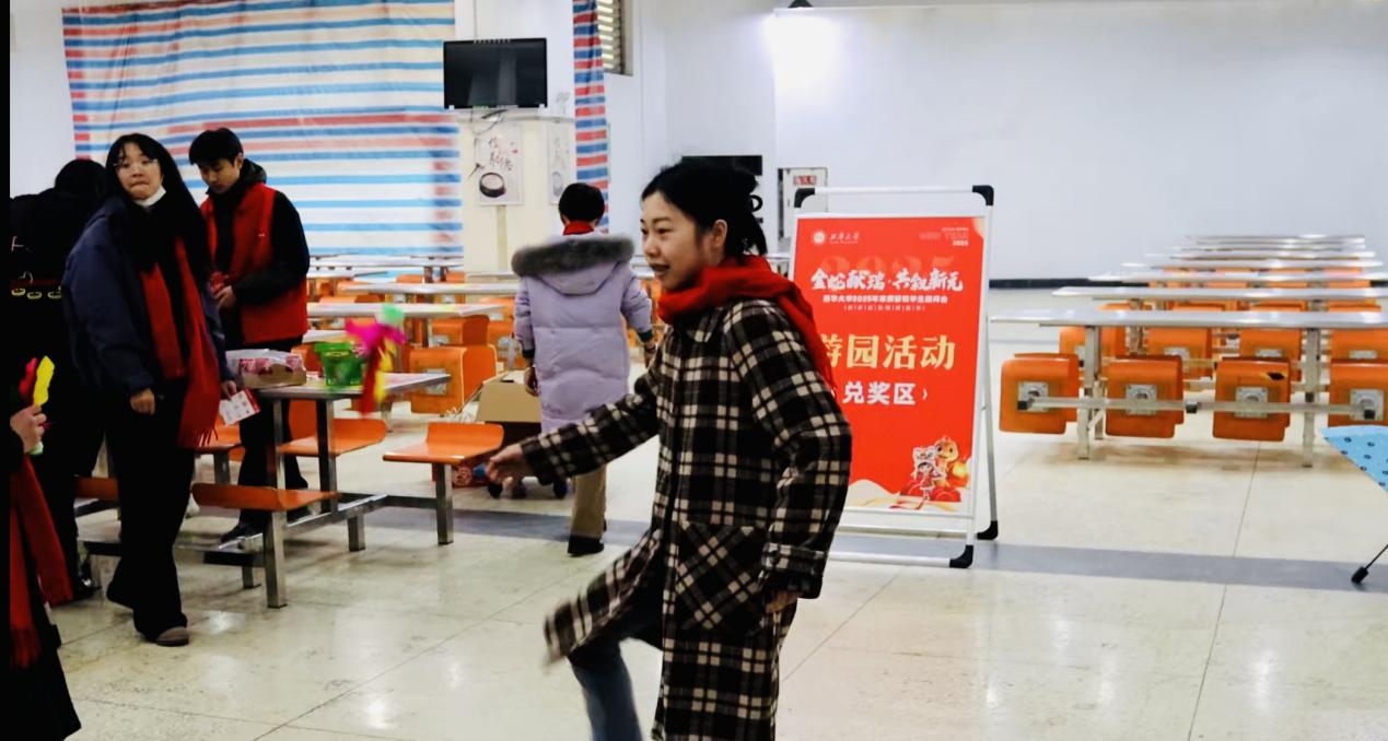 现场还举行了丰富多彩的游园活动,有写福字迎新春、蒙眼摸福、好运投壶、金锣迎新、运送乒乓球、看图猜词、弹瓶盖、踢毽子、抢瓶子等项目。现场充满欢声笑语,同学们积极参与,在游戏中感受年味,在欢笑中迎接新年。