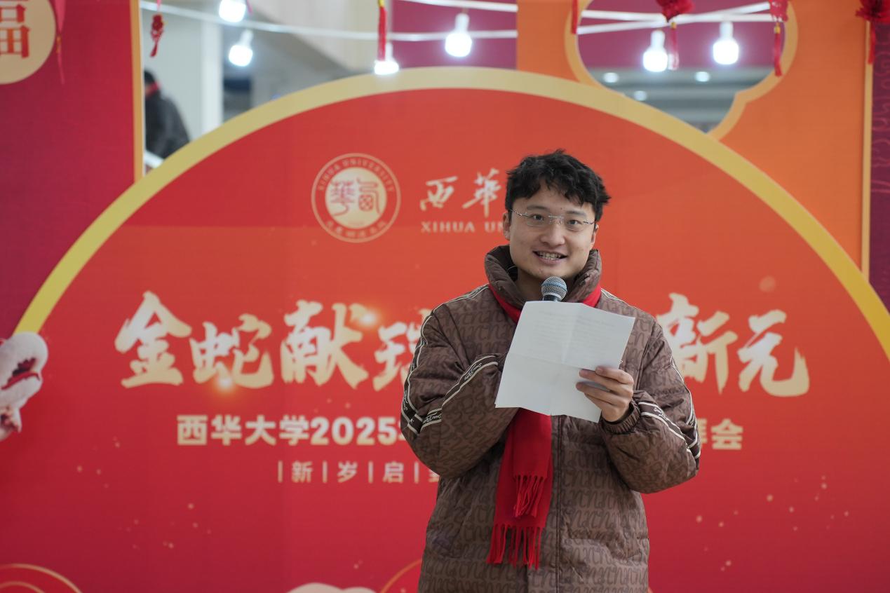 汽车与交通学院2022级研究生牟小军代表寒假留校学生发言。他感谢学校提供的贴心服务和细致关怀,让留校学生感受到浓浓的年味与温暖。