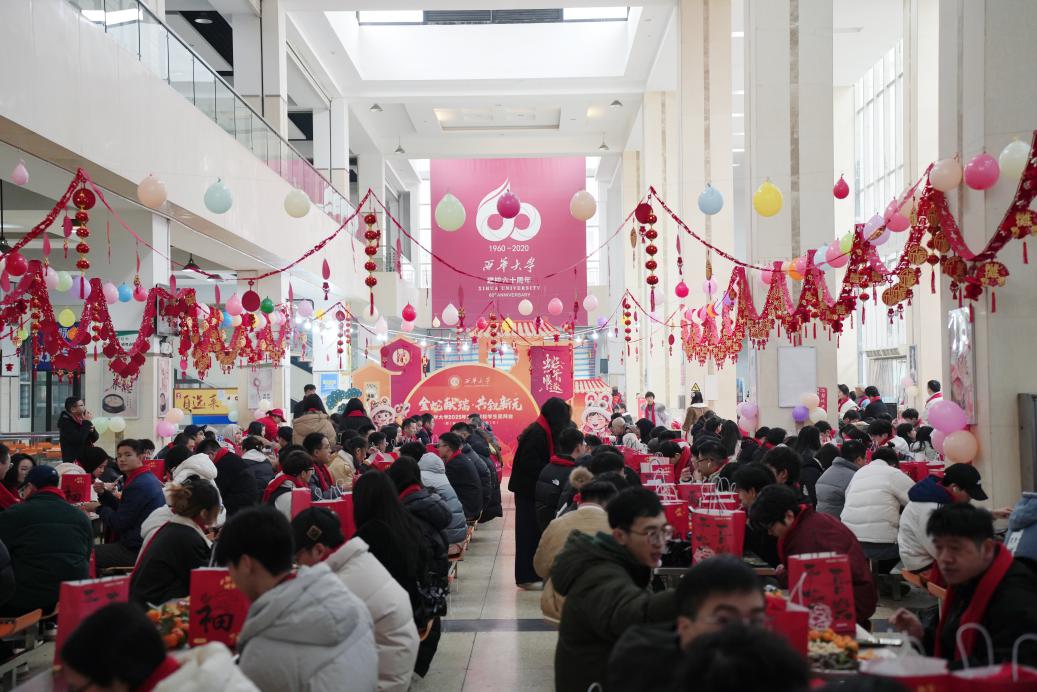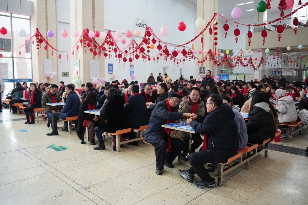 全场师生齐唱《歌唱祖国》,用嘹亮歌声表达了西华人对祖国母亲的衷心祝愿和对美好未来的共同期待。随后,大家一起吃团年饭,共叙往事、展望新年。