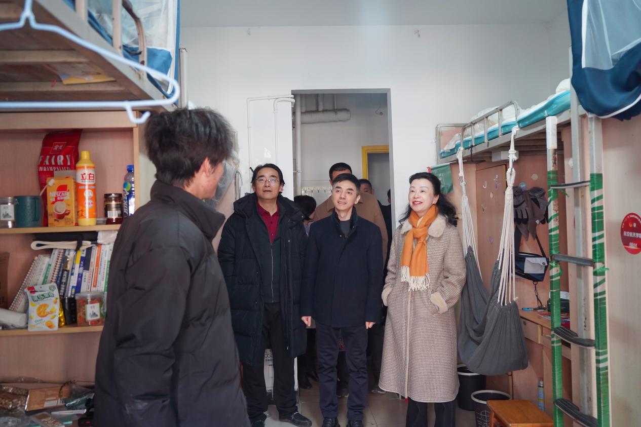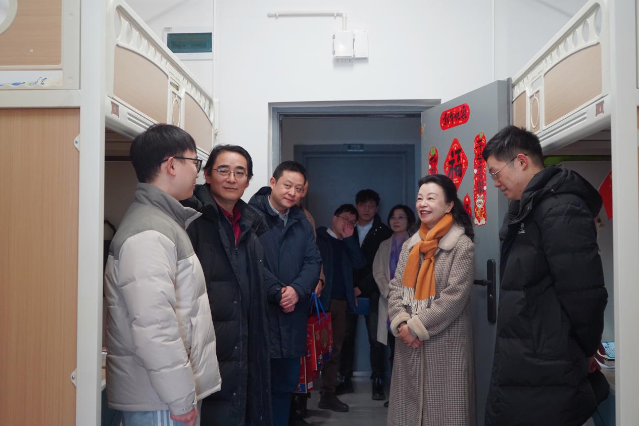 近日,校党委书记靳敏,党委副书记、校长李秋实,党委副书记朱兴华,党委常委、副校长费凌以及相关职能部门负责人前往学生宿舍、训练场、实验室等走访慰问寒假留校学生。靳敏提到,同学们因为学业、比赛、社会实践等原因暂时不能返乡,但学校是大家温暖的家,各部门将精心准备,全力保障大家留校期间的学习和生活条件。希望同学们合理规划时间,劳逸结合,度过充实快乐的寒假。