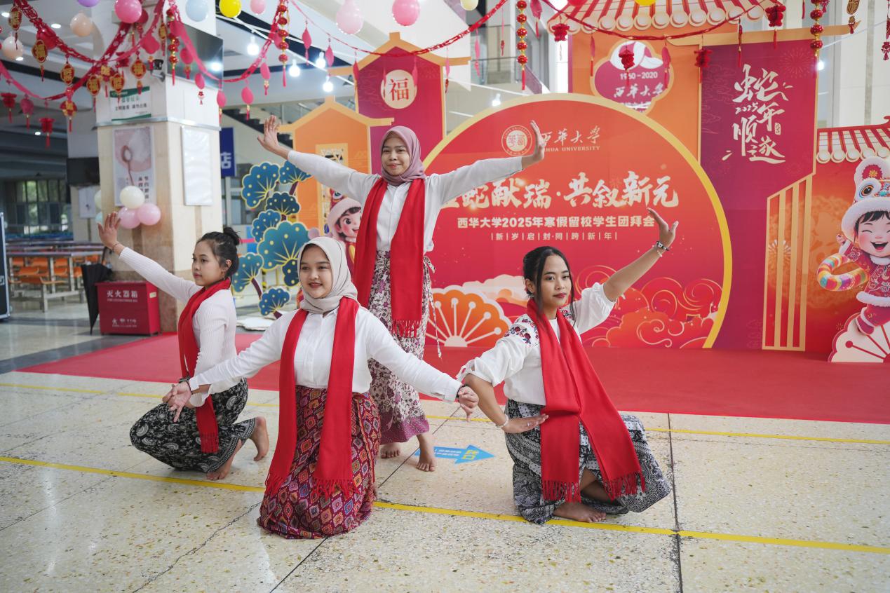 来自印尼、老挝的31名留学生也积极参与到本次新春团拜会活动中,现场体验了包饺子、写春联、剪窗花等中国传统民俗活动,留学生还带来了印尼传统舞蹈表演。