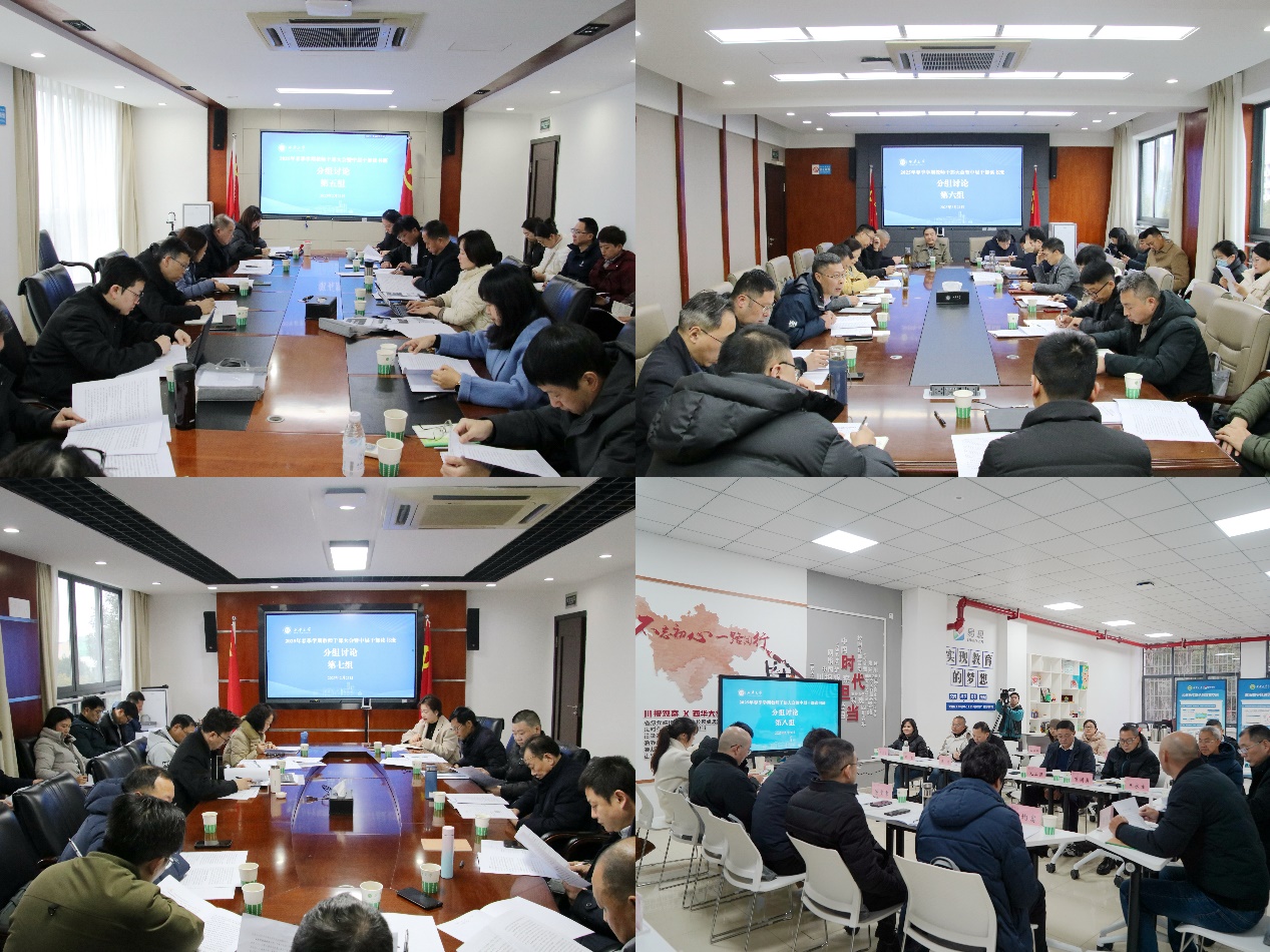 根据会议安排,参会人员分8个组开展讨论。大家聚焦学校高质量发展,结合大会报告、会前专题学习和2025年工作要点,交流心得、碰撞思想。与会教师干部踊跃发言,为学校高质量发展建言献策。