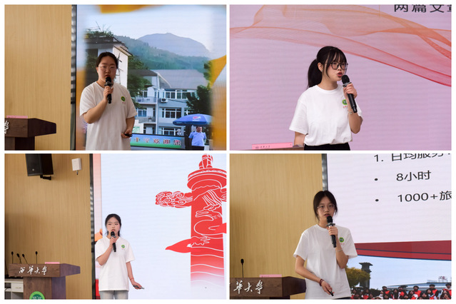 在经验分享环节,优秀个人代表围绕实践目的、实践过程、心得感悟等方面畅谈实践的收获与体会。寒梦启航志愿服务队聂梦佳同学分享了组队前往古蔺中学、蔺阳中学、金兰高中三所学校开展招生宣传活动的做法、成果与经验;黄倩倩、杨舒婷、杨思睿三位同学分别从返乡开展政务实习、春运“暖冬行动”、“爱心托管计划”等方面分享了社会实践经历,以青年视角讲述主动服务基层的担当与感悟。