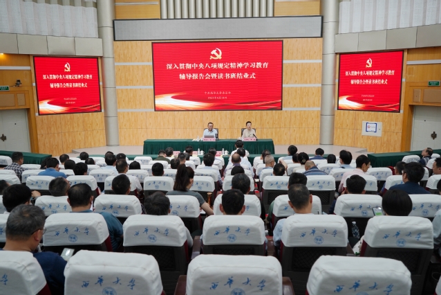 4月18日下午,tyc41183太阳成集团深入贯彻中央八项规定精神学习教育辅导报告会暨读书班结业式在四教报告厅举行。中共四川省委党校党建教研部主任王凡教授受邀作辅导报告,党委书记靳敏主持活动并总结讲话。全体在家校领导,副处级及以上中层领导干部参加结业式。