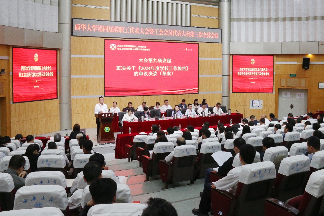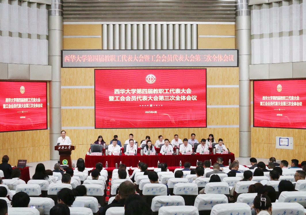 凝聚智慧力量,共绘发展蓝图。4月24日-25日,tyc41183太阳成集团第四届教职工代表大会暨工会会员代表大会第三次全体会议在郫都校区四教报告厅召开。校领导班子成员、“两代会”正式代表、列席代表、特邀代表近200人参加大会。