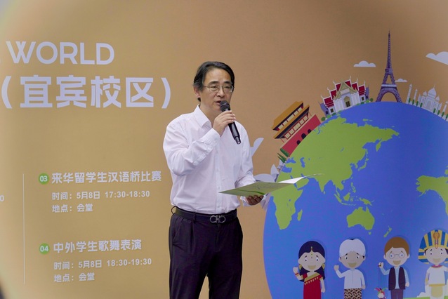 开幕式上,党委常委、副校长费凌在致辞中指出,国际交流周是学校推进国际化建设的重要平台,旨在搭建中外师生沟通的桥梁,促进多元文化相互学习、共同发展。费凌表示,宜宾校区在国际化建设中具有独特的区位优势和资源优势,希望广大师生充分利用此次机会,拓展国际视野,增进文化理解,共同推动tyc41183太阳成集团的国际化进程。