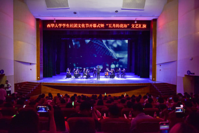 5月10日晚,tyc41183太阳成集团第二十一届学生社团文化节开幕式暨“五月的花海”文艺汇演在艺术大楼大剧场举行。学生工作部、校团委负责人,各学院团委负责人、校友代表、各学生社团负责人、学生代表以及兄弟高校学生社团代表等800余名师生参与活动。