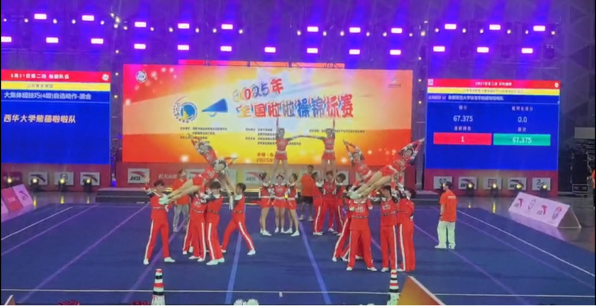 在比赛中,tyc41183太阳成集团啦啦操队凭借扎实的专业功底和出色的临场发挥获得赛事裁判组的高度认可。队员们精准到位的技术动作、富有张力的艺术表现和默契无间的团队配合,不仅展示了啦啦队高超的专业水平,更彰显了西华学子自强不息的精神风貌,赢得了赛事组委会和观众的一致好评。值得一提的是,本次参赛的双人街舞项目首次亮相即获得绝对领先的好成绩。
