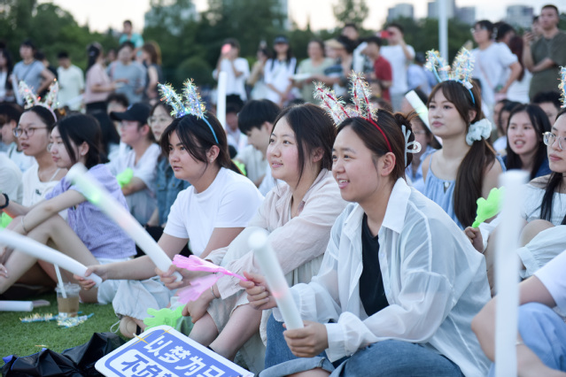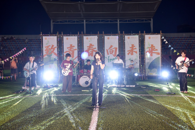 6月15日晚,“青春启航 逐梦远行 ”毕业季草地音乐会在临江苑操场上演。党委常委、副校长费凌,校团委负责人与2000余名师生共同观看演出。