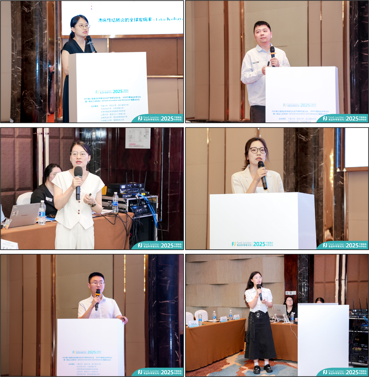 大会以“科技创新驱动、产业应用勃发”为主题,设置1个主会场、11个分论坛,汇聚了来自全国食品及相关领域的350余位专家学者与企业代表,安排了180余场高水平报告,探讨了食品加工、贮藏与保鲜、食品风味研究与感官评价、食品微生物与发酵等11个领域存在的科学问题。食品与生物工程学院副院长饶瑜教授作为嘉宾主持“食品微生物与发酵”分论坛并作了题为“被膜态乳植杆菌微胶囊的制备及其益生功能初探”的报告,郭晴艳副教授在该分会场作了题为“黄水来源抗菌肽资源挖掘及作用机制探究”的报告。赵婕副教授在“食品风味研究与感官评价”分会场作了题为“猪肉肌原纤维蛋白吸附花椒麻味物质的特性研究”的报告;周拯副教授和陈佳新老师在“食品加工、贮藏与保鲜”分会场分别作了题为“核桃分离蛋白磷酸化改性技术及功能性研究”和“蔗糖酯-肌原纤维蛋白共混乳液凝胶品质的探究”的报告。此外,硕士研究生陈思淇在硕士报告分会场也作了题为“Bacillus velezensis BV-07降解β-氯氰菊酯的机理研究及其在发酵苹果汁中的应用”的精彩报告。