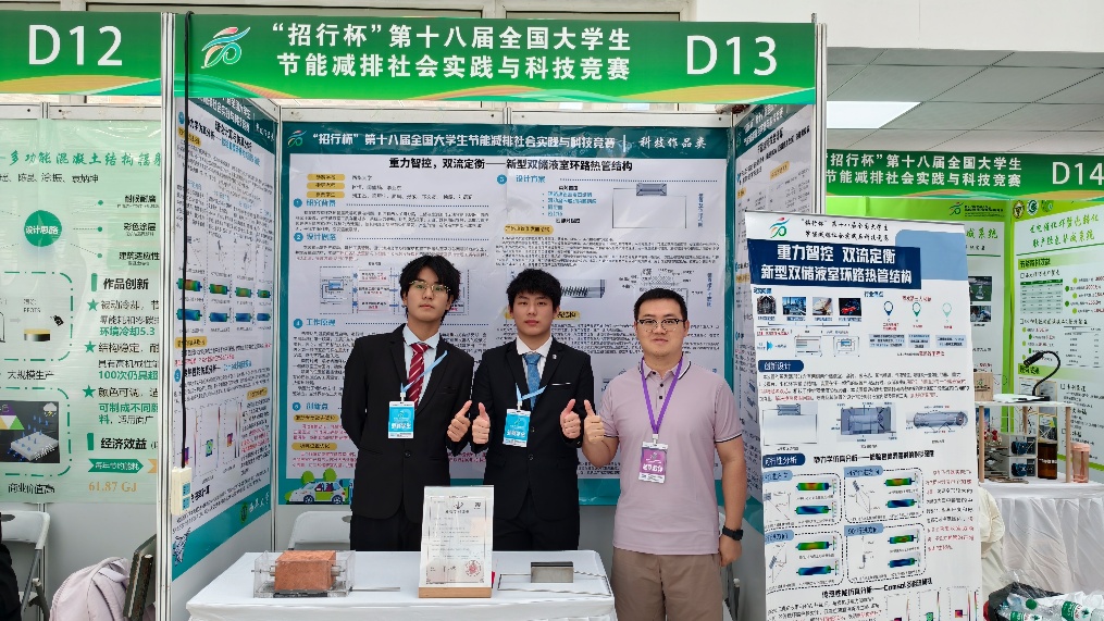 8月8日—11日,第十八届全国大学生节能减排社会实践与科技竞赛决赛在东北石油大学举行。本届竞赛由教育部高等教育司、教育部高等学校能源动力类专业教学指导委员会指导,全国大学生节能减排社会实践与科技竞赛委员会主办。经过网评、会评以及决赛答辩评审,我校能源与动力工程学院学生作品《重力智控,双流定衡——新型双储液室环路热管结构》(指导老师:肖恒、闫盛楠、李亚东)荣获全国一等奖,同时我校还获得三等奖2项。