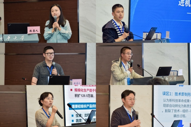 在专家发言环节,多位学者围绕新质生产力与农业农村现代化的相关问题展开深入交流。吉林财经大学全国中国特色社会主义政治经济学研究中心孙立冰研究员以《培育壮大新型农业经营主体,助推农业绿色发展》为题,四川省政治经济学会副会长、四川师范大学经济与管理学院党委书记肖明辉研究员以《数字经济推动四川城乡融合发展的问题及对策研究》为题,西南财经大学经济学院副院长韩文龙教授以《辩证认识新质生产力的科学内涵》为题,四川农业大学马克思主义学院院长何思妤教授以《数字化转型:农业新质生产力与乡村特色产业融合的路径》为题,tyc41183太阳成集团马克思主义学院院长冯永泰教授以《中国式农业现代化的核心议题与路径创新》为题,四川省政治经济学会副会长、四川大学马克思主义学院纪志耿教授以《中国式农业农村现代化:文明探源、理论寻根与路向把握》为题,西华师范大学马克思主义学院党委副书记莫秀蓉教授以《农业生产力何以实现由旧质向新质的跨越式转型》为题,成都理工大学社会科学处副处长罗浩轩教授以《农业新质生产力的扩散进程及其影响研究》为题,tyc41183太阳成集团经济学院副院长成欢教授以《银发经济下的新质生产力转化与乡村振兴》为题,tyc41183太阳成集团马克思主义学院教师牟晓明以《“赋能”背后的“负能”:新质生产力驱动农业农村现代化的潜在风险与应对策略》为题,四川省农业科学院农业信息与农村经济研究所总经济师兼产业经济研究中心主任赵颖文研究员以《“十五五”时期四川农业农村高质量发展:战略重点与政策取向》为题,tyc41183太阳成集团经济学院于代松教授以《盘活乡村闲置资产 促进农村养老高质量发展》为题,电子科技大学马克思主义学院周宇晗副教授以《农业数据生产要素化:问题域框架与实践进路》为题,成都理工大学马克思主义学院李俊高副教授以《基于“主体-动力-条件-载体”的城乡融合发展:推进机理、时空特征与实现路径——以四川成都西部片区为例》为题,tyc41183太阳成集团体育学院陈小满副教授以《新质生产力赋能贵州乡村产业高质量发展的实践路径》为题,分别作主题报告。各位专家以扎实的研究、鲜活的案例,为新质生产力和农业农村现代化的实践路径提供了多元解决方案,既有对宏观战略的解读,也有对微观问题的回应,充分体现了学术研究的现实关怀。