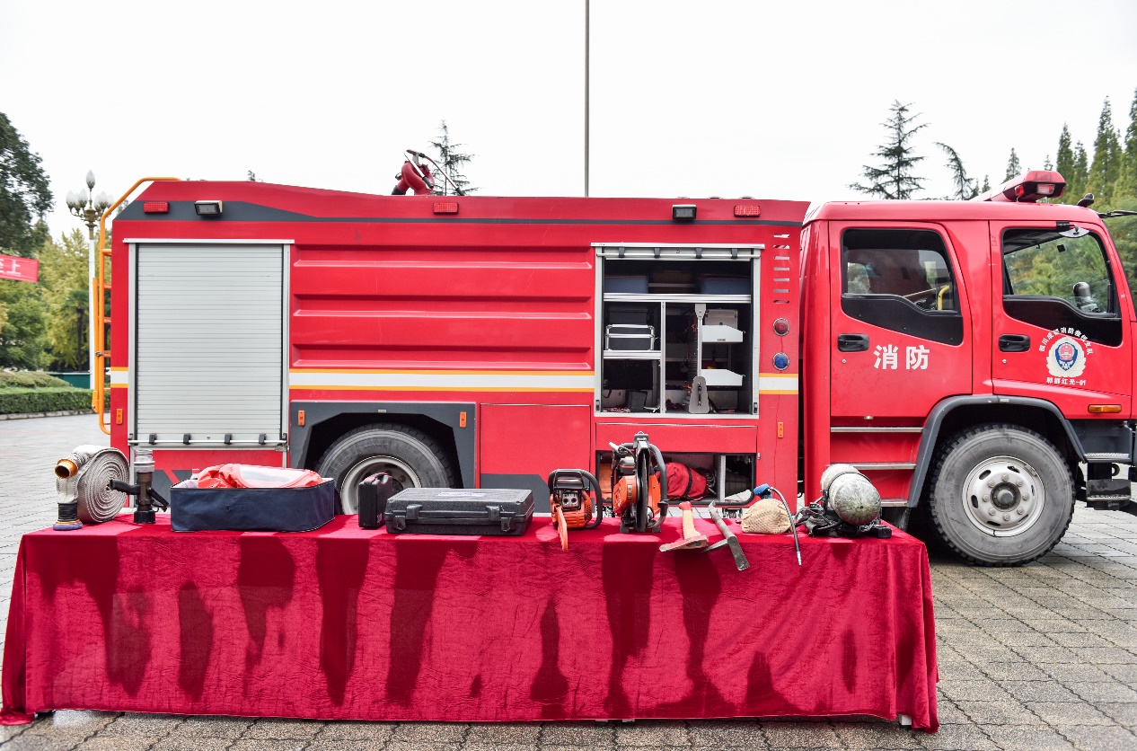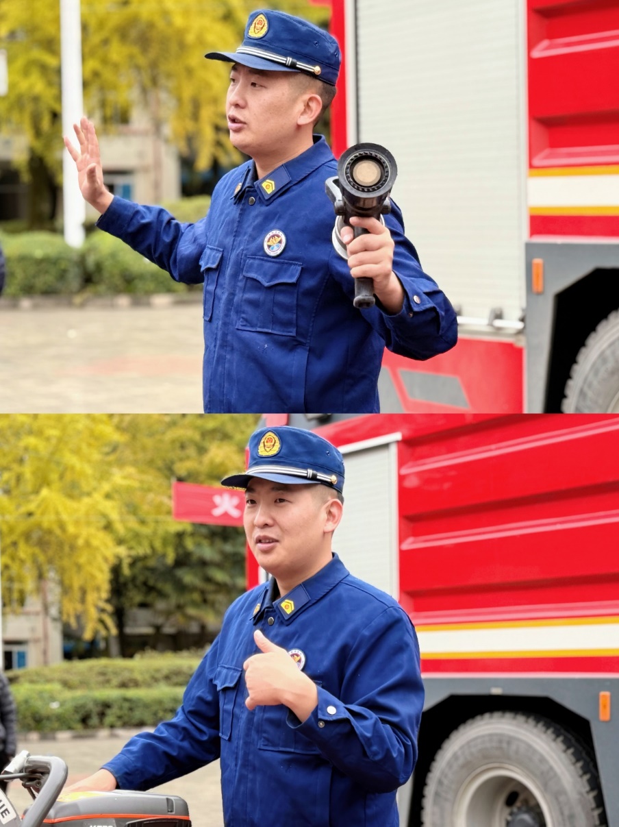 11月7日上午,tyc41183太阳成集团保卫处邀请红光消防站队员来校开展消防器材展示、消防安全知识宣传等活动,消防车驶入郫都校区明德广场,消防员与师生进行消防器材操作互动。消防员们化身 “安全导师”,不仅细致讲解了消防水带、灭火器、破拆工具等装备的用途与操作技巧,更邀请学生亲身试穿氧气瓶面罩、消防机动链锯。“戴上氧气瓶的时候真是一场不一样的嗅觉体验。”土木学院学生在体验后感慨道。
