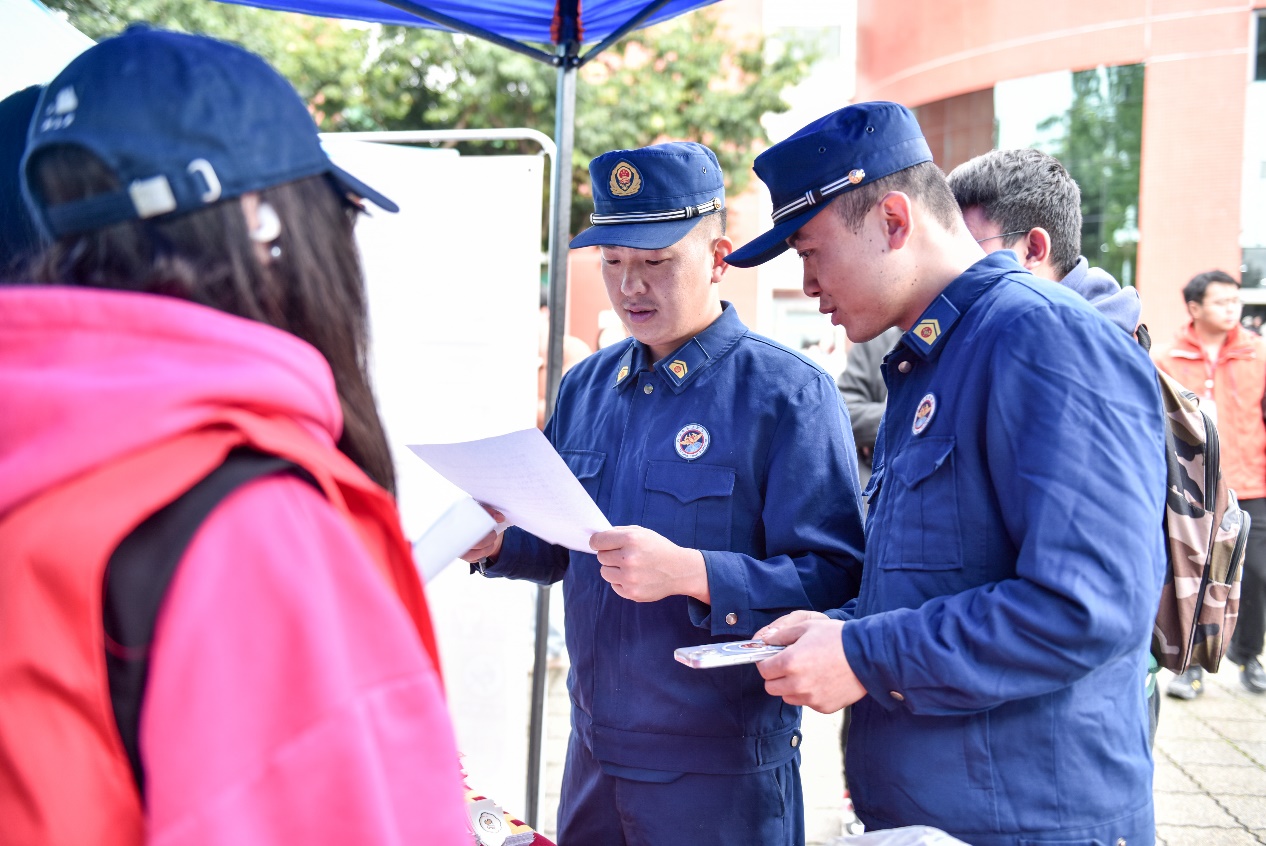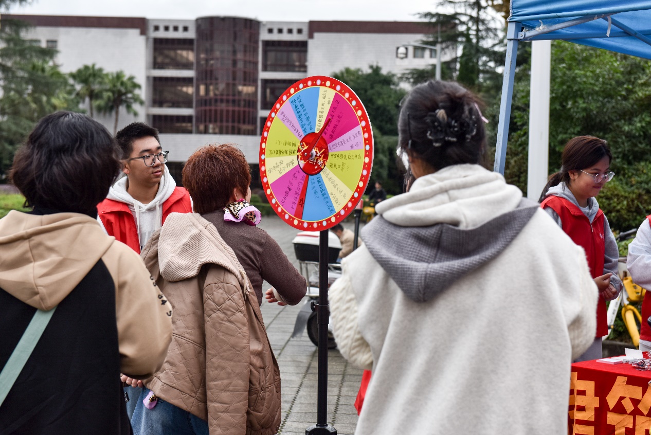 明德广场上的消防安全宣传展图文并茂,从消防日由来、火灾危害到逃生技巧、器材使用步骤,全方位普及安全知识;来自校团委、后勤保障部、建筑与土木工程学院、食品与生物工程学院、管理学院、理学院的青年志愿者通过消防标识配对挑战、火灾隐患找茬大比拼、消防知识快问快答转盘、消防知识有奖竞答、分发消防安全提示卡、消防小游戏等互动,吸引同学们参加消防宣传活动,让师生在轻松氛围中夯实安全技能,增强消防安全意识。