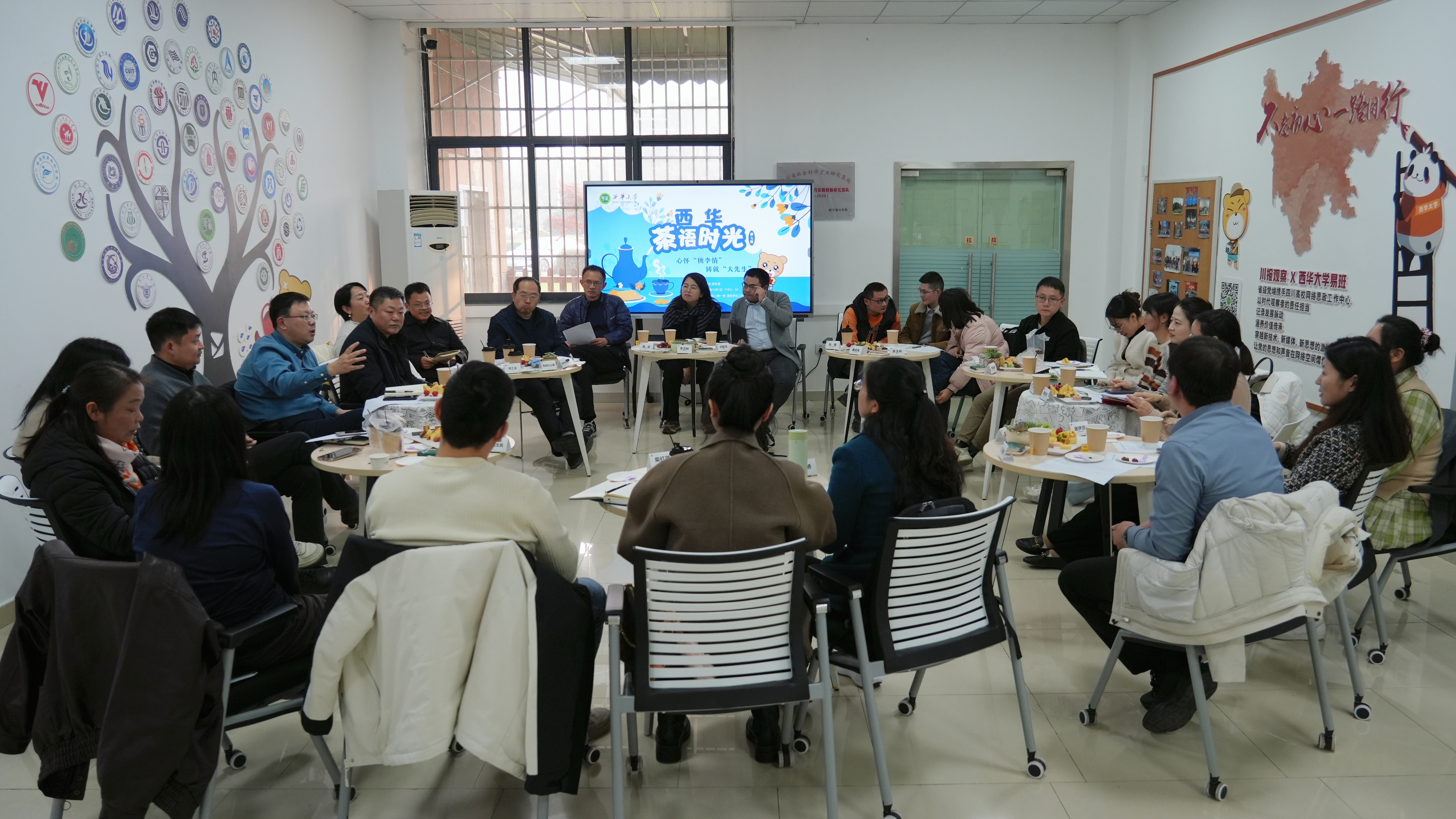 12月1日,第七期“茶语时光”活动在易班发展中心会议室举行。本次活动以“心怀‘桃李情’ 铸就‘大先生’”为主题,副校长邵永波与各学院教师代表齐聚一堂,共话教育初心,畅谈职业发展。
