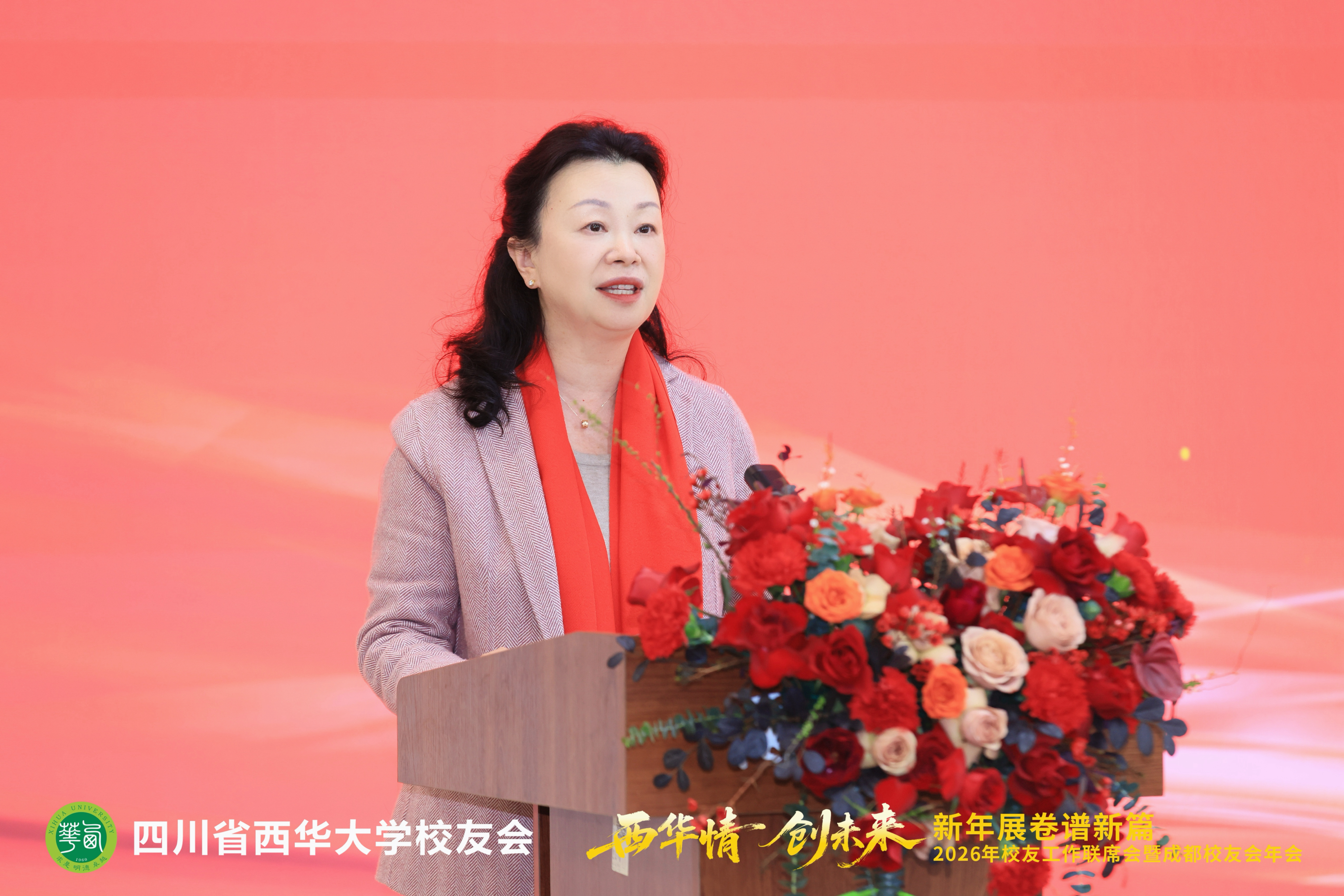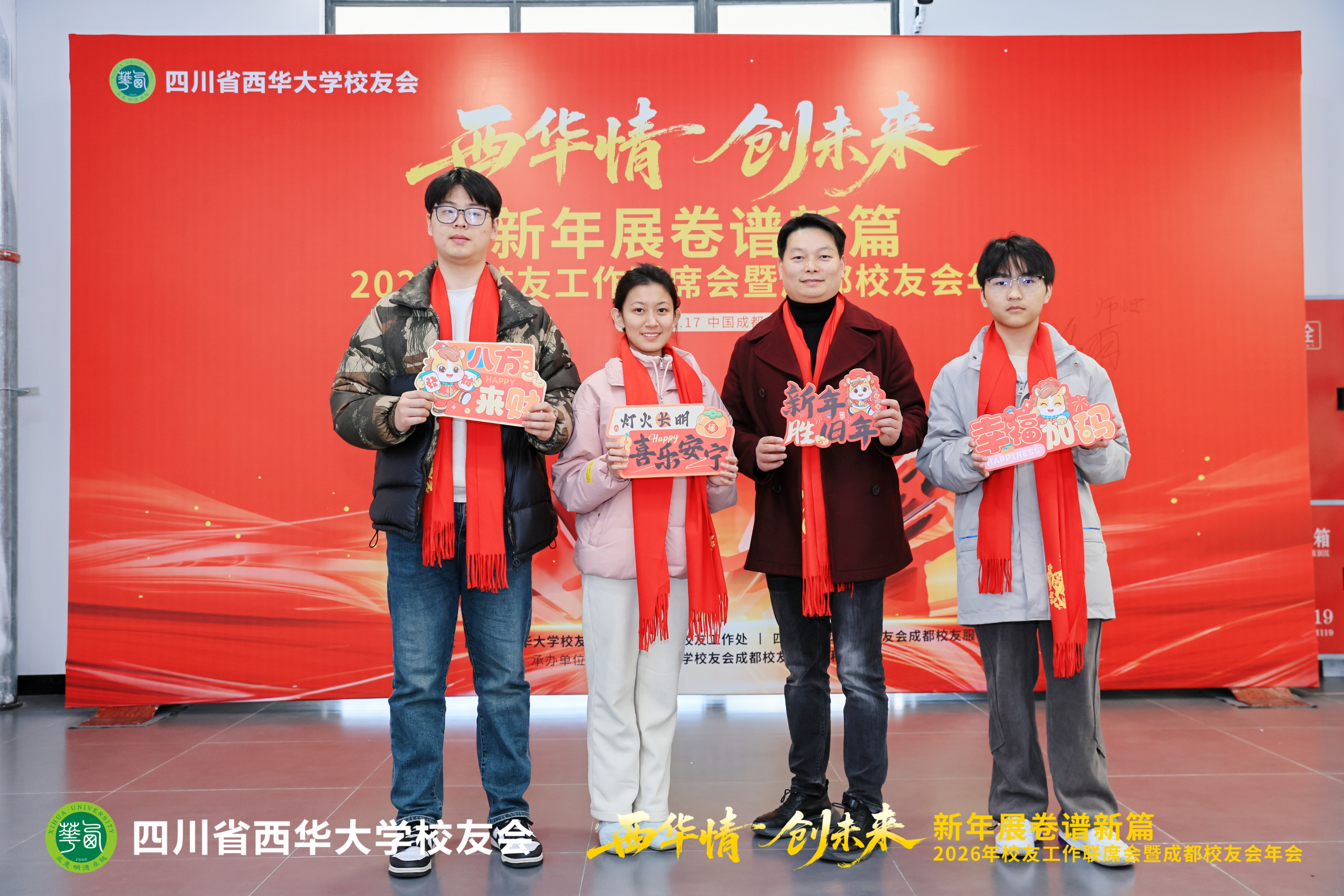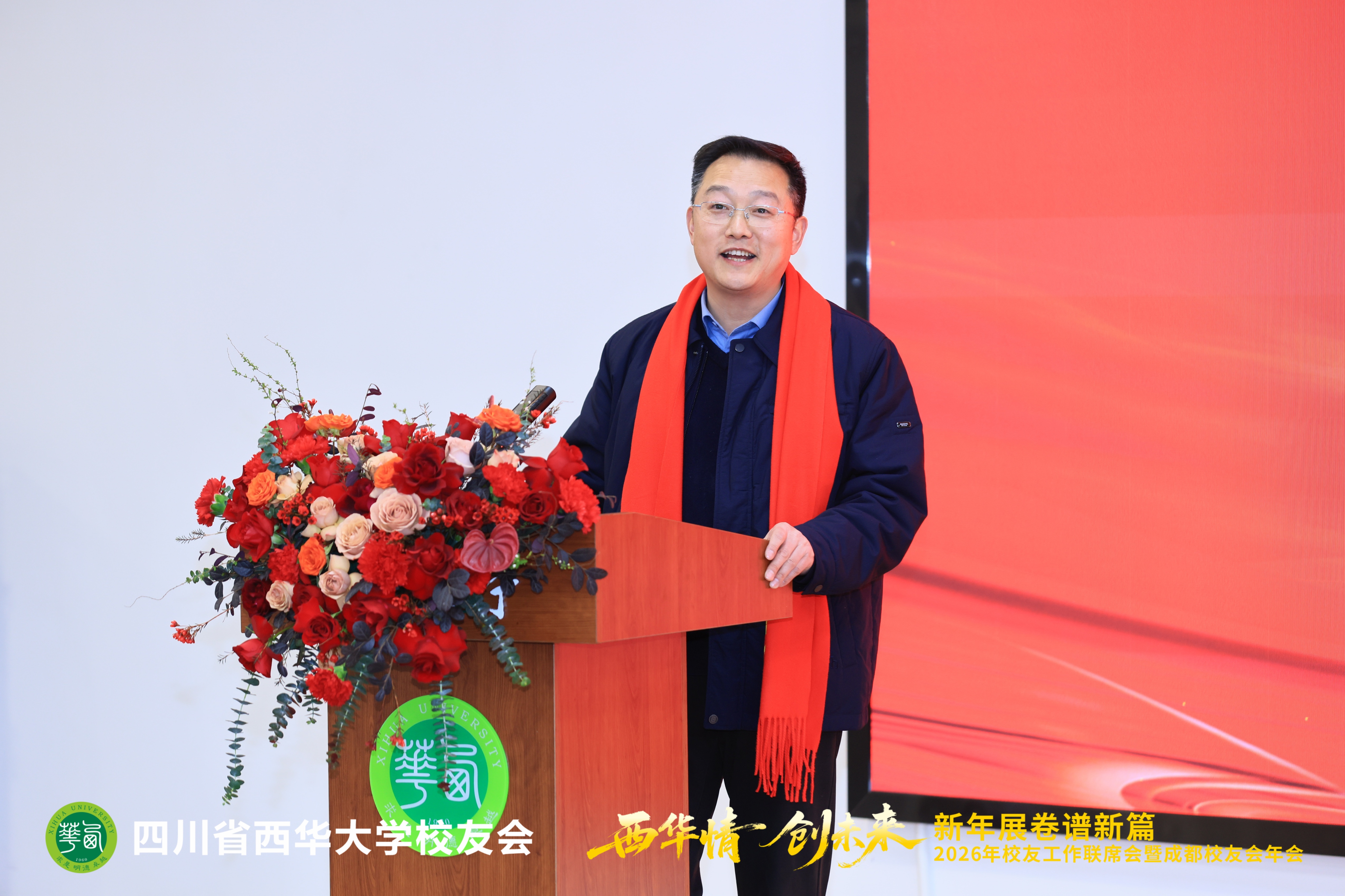 1月17日,2026年校友工作联席会暨成都校友会年会在郫都校区召开。会议以“西华情·创未来——新年展卷谱新篇”为主题,党委书记靳敏,党委副书记郎方年,校内各单位负责人与来自各地的校友代表、嘉宾欢聚一堂,共叙情谊、共商发展。