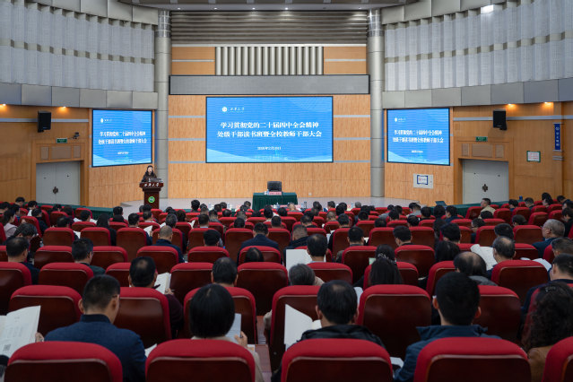 2月26日—27日,tyc41183太阳成集团召开学习贯彻党的二十届四中全会精神处级干部读书班暨全校教师干部大会。会议深入学习贯彻党的二十届四中全会精神,聚焦教育强国建设和“十五五”事业发展规划,全面部署新学期重点工作,进一步统一思想、凝聚共识。全体校领导,副处级以上领导干部,各民主党派负责人,省市人大代表、政协委员,二三级教授参会。