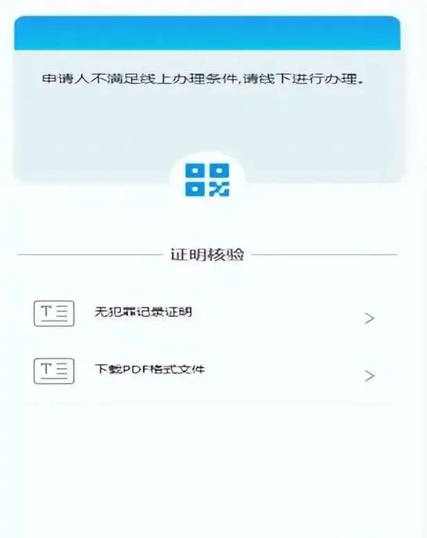 八、若申请人不满足线上办理条件,则提示“申请人不满足线上办理条件,请线下进行办理。”