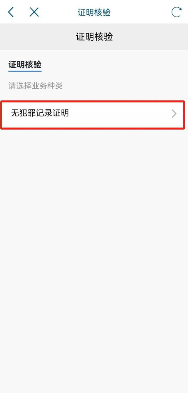 十、核验,点击“无犯罪记录证明”进入证明核验页面,选择“无犯罪记录证明”栏目扫码,核验页面电子版展示,根据核验结果进行展示。