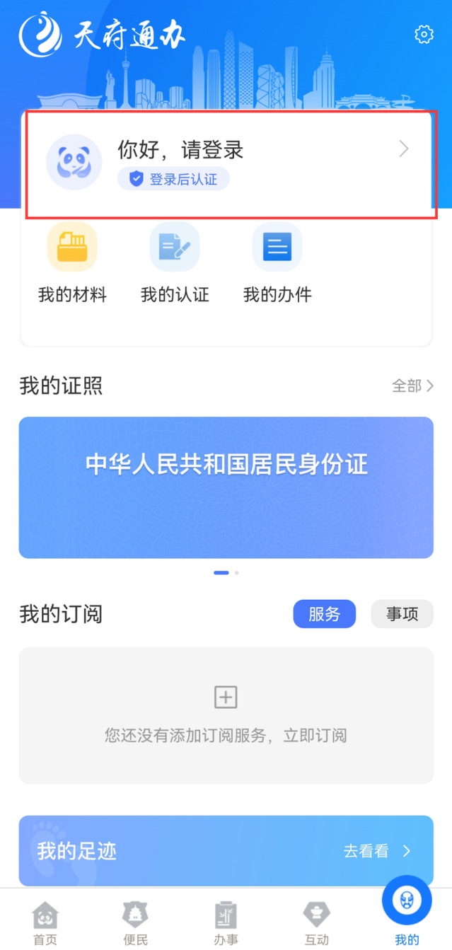 一、下载“天府通办”APP 后,点击“我的”进入登录页面。