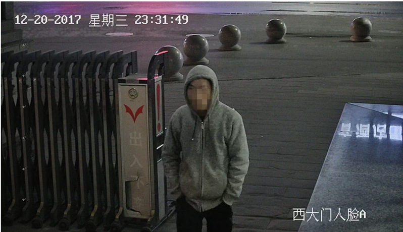 12月25日,监控排查人员经过5天的校内监控信息和校外“地铁保养站”监控信息反复的信息筛选,采取跟踪和倒查措施,最终锁定嫌疑人的体貌特征,经红光派出所通过公安信息库确定了嫌疑人身份。嫌疑人身份确定后,红光派出所办案警官通过公安管控手段,对嫌疑人的行动轨迹进行了监控,并于2018年1月8日确定嫌疑人的落脚地后,出动警力将其捕获。