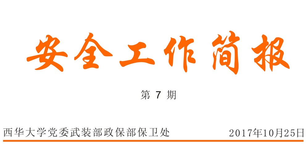 按照创建“平安西华”的工作目标党委武装部政保部保卫处创新工作理念,拓展军训内涵,将安全教育演练贯穿到 2017级学生军训的全过程,开展了形式多样的安全宣传教育、应急疏散演练和灭火实操演练,取得了突出成效。一是向新生发放《平安西华常识 30 问》,组织学生自学和各连队集体朗读宣讲。二是开展了“安全在我心中”的主题演讲比赛。三是分九批次组织全体新生开展应急疏散演练和灭火实操演练。四是邀请郫都区、彭州市司法和公安人员为全体新生举办安全法治讲座。五是组建新生平安西华志愿服务队,探索学生参与校园安全管理服务工作模式。将安全宣传教育、应急疏散演练和灭火实操演练融入到军训之中,让新生一进校就重视安全防范,增加安全常识,增强安全意识,提高应急和灭火技能,不仅丰富了军训内容,而且让学生终身受益,为平安西华建设奠定了基础。