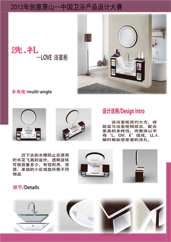 我校应用技术学院2010级产品造型设计(家居产品)专业的学生在学院赵倩老师的指导下,参加了“2012创意萧山——中国装饰卫浴产品设计大赛”。此次比赛中,我校学生在浴室柜设计方面发挥出色,设计出一系列具有创新型、应用型产品而被大赛评委授予组织奖。 此次比赛全国共有22个省市区69所高等院校、33家专业设计机构和7名自由设计师参与比赛,最终全国共有7所高校获得组织奖。 应用技术学院在教育教学中积极改革,为学生积极搭建创新实践平台,不断提高学生创新精神和实践能力,促进了教育教学质量的不断提高。