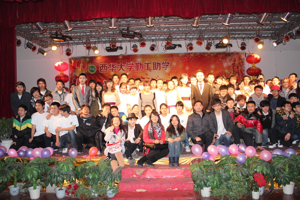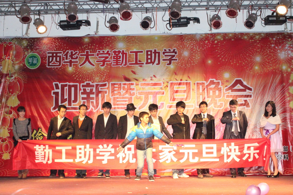 | 12月28日晚7:00,我校勤工助学的同学在学生活动中心举办了“勤俭自强、共创辉煌”为主题的2012年迎新暨元旦晚会,学生工作部负责人及有关老师观看了晚会,全校近1000名勤工助学学生见证了由勤工助学岗位同学自编自演的精彩节目。 晚会在生物工程学院勤工助学岗位学生极具运动活力的“体操舞蹈”节目中拉开帷幕。在迎新篇中,彭州校区勤工助学学生演出的《雷人舞》为晚会增添了流行气息,由外国语学院选送的诗朗诵《我自豪!我是西华勤工助学人》,则表达出勤工助学学生的心声,在现场引起了强烈共鸣。在自立自强篇中,华西报、水电、校报、家属区、助学实践会等岗位的学生通过舞蹈、小品、武术、书法等形式,展示了勤工助学同学不畏困难、自立自强的精神与品格。在展望未来篇中,话剧《我们还年轻》、视频《未来的我们》等节目,向大家描绘了勤工助学同学心系民族和国家发展,决心学好知识、增强本领、建设美好家园的愿望。晚会在《感恩的心》大型手语节目中落下帷幕。 晚会通过视屏播放和微博互动等形式向大家介绍了勤工助学的工作流程、举办的活动以及近年来工作的成果,晚会中场还设置了提问和抽奖环节。 校学生工作部副部长王强在晚会上致辞,表达了对同学们的亲切慰问和新年的美好祝福。他说,我校勤工助学工作自1995年开展以来,在学校各级领导的亲切关怀和全校老师的悉心指导下,现在已拥有近600余个固定岗位和近2000个临时岗位,同学们在各自岗位上脚踏实地、努力工作、奉献进取、锤炼意志,逐渐培育和形成了极具我校特色的“自立自强”的勤工助学精神。从勤工助学近二十年的实践探索来看,这种育人模式是成功的,通过勤工助学岗位的锻炼,出身寒门的学子培养了“自强不息、吃苦耐劳和踏实肯干”的优秀品质,这成为他们战胜困难、探索真理的宝贵财富。最后,王强副部长提出殷切希望:一是希望同学们继续发扬勤工助学精神,在平凡的学习生活中增强服务社会的本领;二是希望同学们珍惜勤工助学机会,在工作中开拓创新,进一步培养奉献社会的职业精神;三是希望同学们积极备考,在即将到来的期末考试中取得好成绩。 据学生工作部部长徐元彬介绍,近年来学生工作面临的一个重要课题是对家庭经济困难学生的资助、教育和培养。就勤工助学工作而言,这种实践育人模式是很好的,也是成功的,但现在由于形势的变化,勤工助学也面临较大压力。同时,徐部长希望家庭经济困难的学生通过自身努力,获得奖助学金,对于已获得资助的学生应学会感恩社会和国家,并在日常学习和生活中承担更多的社会责任;学生工作部将竭尽所能,为家庭经济困难学生提供更多的助学机会。