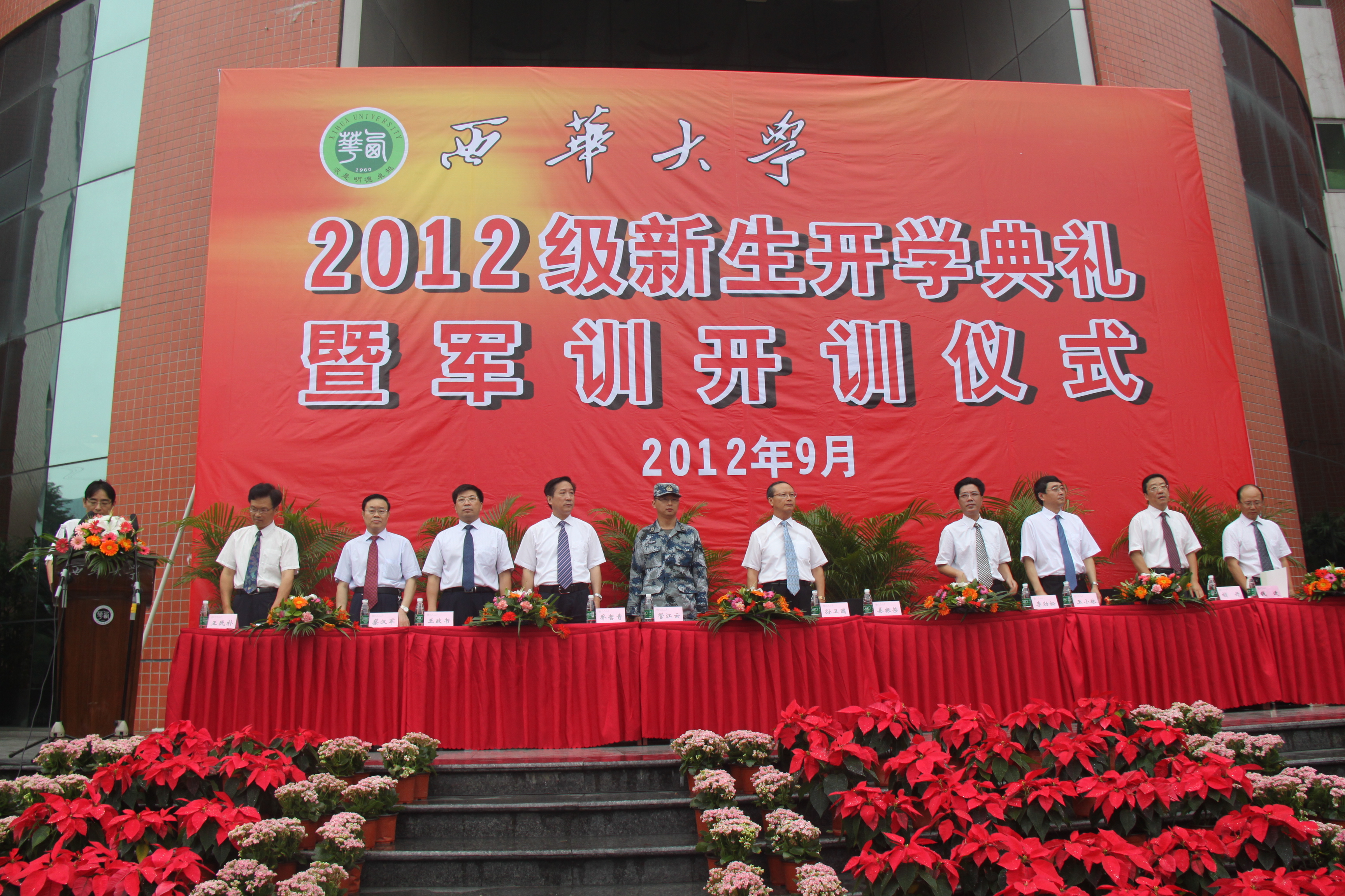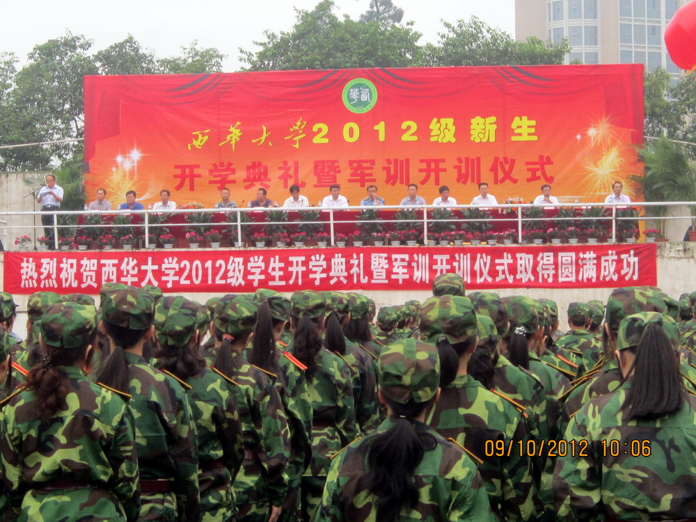 9月10日上午,我校2012级新生开学典礼暨军训开训仪式分别在校本部、彭州校区、人南校区举行。 上午8:30,我校2012级本科及研究生新生开学典礼在校本部明德广场举行。校长孙卫国,校党委副书记王民朴,副校长李劲松,校党委副书记王小林,副校长乔哲青、胡丹、王政书,正厅级调研员蔡汉军、钱进,中国人民解放军95607部队政治部主任姜根荣上校出席了典礼。校党委副书记、纪委书记王民朴主持典礼。 在庄严的升国旗仪式后,典礼正式开始。孙校长代表学校党委、行政以及全校师生向2012级的新同学们表示热烈的欢迎和衷心的祝贺,并向全校教师致以节日的问候。孙校长指出,经过3年高中的学习和奋斗,大家来到了tyc41183太阳成集团,从互不相识的陌生人变成了在同一个校园中学习、生活的一家人。大学做什么?应该怎样度过大学四年的学习生活?孙校长代表学校对新同学们提出了三点期望:第一,培养责任,学习做人。从今天开始,同学们要学习承担责任,要有浓烈的社会责任感;要学习如何做人,做一个人格健全、有追求的、高尚的人;要培养团队精神,学会沟通,学会表达自我。第二,磨练自我,学会做事。学会做事要从自我的内务、寝室的清洁做起;要学会做小事,只有把小事做好,将来才能做大事。第三,追求上进,学会学习。学习不是简单的做笔记或考试,同学们要牢记世界知名教育家约翰•杜威说的“学习是基于老师指导下的发现,而不是信息的传递”这句名言,要在老师的指导和帮助下,以发现式的、创新式的态度去求知、去学习,要敢于怀疑,敢于挑战,敢于提问,敢于探索。此外,孙校长还指出,希望同学们通过军训,向教官们学习忠于祖国、忠于人民、忠于党的良好品质,培养强烈的团队精神和组织纪律性。最后,孙校长寄语全体新同学,希望他们在校期间刻苦学习,奋力拼搏,努力成为tyc41183太阳成集团的优秀名片。 中国人民解放军95607部队政治部主任姜根荣上校讲话。他指出,军训是大学生在校期间接受国防教育、培养爱国主义精神的一个基本形式。教官们要继续发扬优良的战斗作风,严格训练,认真管理,科学施训,把军队的基本常识教给同学们,提高同学们的国防意识,培养同学们坚定的信念和刻苦学习的精神,为今后报效国家,成为国家的栋梁之才打下良好的基础。 教师代表、交通与汽车工程学院教授徐延海代表全校教师向新同学致辞。他对新同学们说,西华的美在于“天行健,君子以自强不息;地势坤,君子以厚德载物”的西华精神。这种精神激励着一代又一代的西华人迈向成人成才。作为一名教师,愿倾注所有,全力以赴,协助同学们用激扬的青春去奏响最响亮的音符。 校学生会主席刘嗣立,本科新生代表、机械工程与自动化学院2012级机械设计制造及自动化专业沈睿文,研究生新生代表、生物工程学院2012级食品工程专业陈凌分别在典礼上作了发言。参训学生代表、交通与汽车工程学院张鸿天带领所有参训同学宣读了军训誓词。 上午10:30,我校2012级专科新生开学典礼分别在彭州校区、人南校区举行。 开学典礼暨军训开训仪式现场 主席台 校长孙卫国寄语新生 整齐的队列 升旗仪式