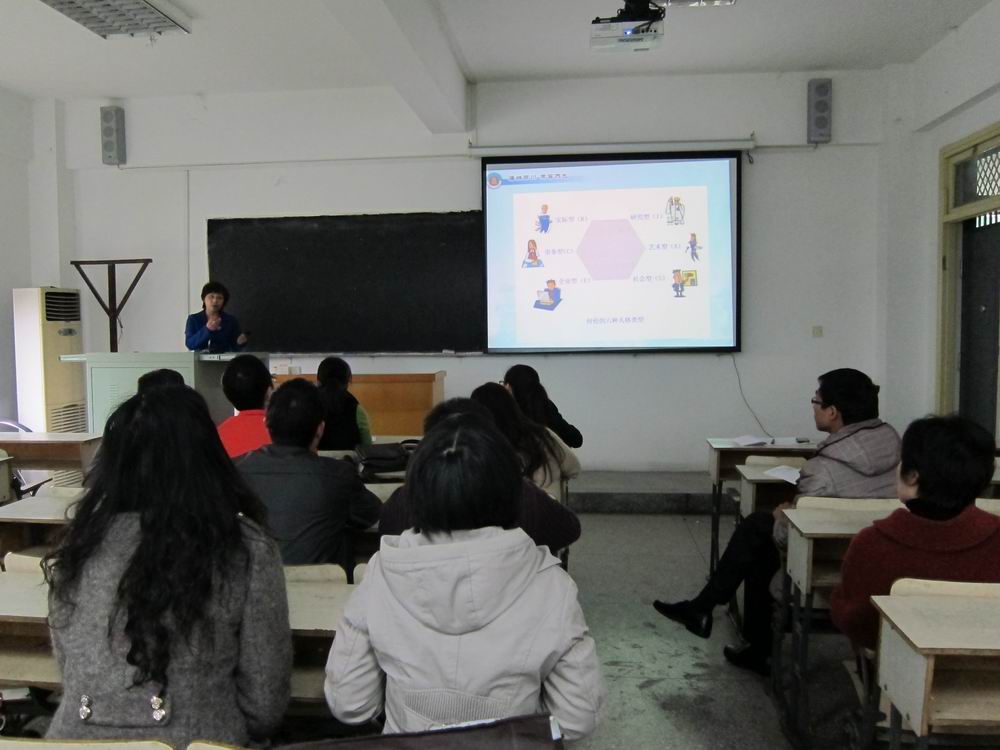 刘老师是四川高校从事就业指导课程教学的首批教师之一,在学生就业指导方面具有丰富的经验。此次刘老师针对就业指导课程的内容建设、讲授技巧等对我校教师给予了指导和培训,并示范讲授了生涯规划课程中的“学生自我认知”部分内容。刘老师认为,就业指导课程重要的不是理论,而是一种体验,这是一门体验式的课程,是由内而外的课程,重在学生的参与。在课堂上一定要用案例、故事、小游戏等充分调动学生的积极性,引导学生由终到始,从大一开始规划。