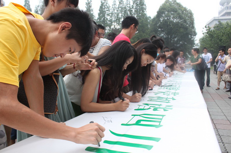 “保护环境,从我做起,从身边做起,从小事做起。” “希望荒漠化得到有效遏制,希望我们身边的破坏行为减少,共建美好家园!” “地球妈妈!愿你健康长寿!愿你永葆美丽!” “我的中国梦,保护生态平衡,遏制荒漠化!” 6月17日上午10:00,第十九个“世界防治荒漠化和干旱日”签名活动在明德广场举行,四川省林业厅副厅长、四川省绿委办主任包建华,四川省林业厅相关负责人,共青团四川省委相关负责人,校团委主持工作副书记王唯洁,校团委副书记易宇峰以及青年学生代表参加了签名活动。活动由易宇峰主持。 活动现场,与会人员纷纷在横幅上签字,留下对“遏制荒漠化,实现中国梦,建设美丽繁荣和谐四川”的美好祝福。包建华副厅长详细地为同学们讲解了土地荒漠化的定义及危害,并介绍了我省的生态现状,她希望同学们进一步提高对防治土地荒漠化重要性的认识,唤起自身的责任感和紧迫感,遏制荒漠化,实现中国梦。 我校志愿者代表赵凯旋说,土地荒漠化是“地球的癌症”,它的存在和进一步扩散给社会发展带来了严重的影响,与生态文明相悖,作为青年学生的我们更要肩负起建设美丽中国的使命,携手共同参与到荒漠生态治理和保护的伟大事业中去,共建绿色家园。 据悉,我省荒漠化主要表现是:土地沙化和岩溶地区石漠化。据2010年第四次沙化监测,全省有沙化土地91万公顷,主要集中在阿坝藏族羌族自治州和甘孜藏族自治州的31个县,面积85万公顷。甘孜、阿坝两州的沙化常被称为“川西北沙化”。 据2012年第二次石漠化监测,全省石漠化土地面积73万公顷,涉及10个市州46个县,一般被称为“岩溶区石漠化”。 两者相加,全省荒漠化土地面积达164万公顷,占全省幅员面积的3.38%。我省是全国唯一的土地沙化和岩溶区石漠化面积都超千万亩的省份。
