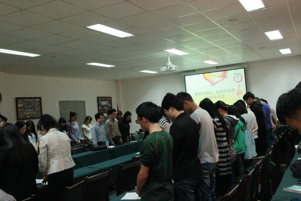 4月24日下午16:00,校团委在体育馆北会议室组织召开 “我的中国心 我的中国梦”师生座谈会。校团委负责人,政治学院相关负责人,各学院团委书记、学生代表、学生组织干部代表70余人齐聚一堂,畅谈“我的中国梦”。 交流开始前,全体与会人员全体起立,为在四川雅安芦山地震中遇难的同胞和在抢险救灾中英勇牺牲的战士默哀。 座谈会上,政治学院副院长郑小明从历史性、时代性、未来性、长期性和曲折性、民族性与个体性五个方面向大家阐述了他对“中国梦”的理解。他说,中国梦是民族复兴之梦,国家富强之路,人民幸福之梦。政治学院封德平副教授从美日德等国的崛起方式、产业格局、人事布局等方面对比中国的现状,讲述中国特色社会主义道路的优越性。 校团委主持工作副书记王唯洁认为大家需先深刻理解“中国梦”的内涵。“中国梦”本质内涵是民族复兴、国家富强、人民幸福,中国梦是每个人梦想的组成,需要通过每个人的行为来实现,他希望青年学生努力学习,实现自己的创业创新、志愿服务和文化艺术等梦想。 听了老师们对于“中国梦”的理解,同学们深有感触,纷纷陷入思考之中。有同学提出 :“青年学生如何更好地把个人梦和中国梦结合在一起?” 等问题,老师们都给予了详细地解答。 除组织召开师生座谈会外,校团委还将通过“西华讲堂”,邀请专家学者举办专题报告会,与学生面对面交流,让广大学子更能深刻理解“中国梦”的内涵。 据悉,从4月上旬开始,校团委还联合政治学院,组织了一支以研究生为主、本科生为辅的“中国梦”宣讲团队,深入各学院团支部,以团组织生活形式,对“中国梦”进行宣讲、讨论,解读“中国梦”的历史底蕴,宣讲我国革命建设、革命和改革历程、辉煌成就、宝贵经验和前进方向。目前,该活动已举办7场。