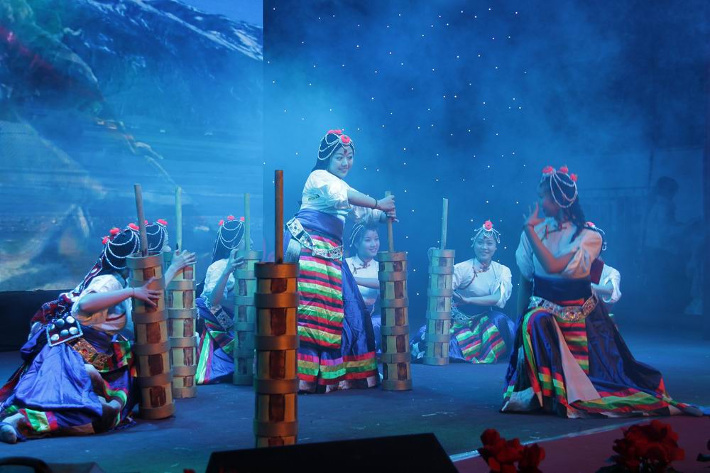 学院书记和老师们的歌曲串烧《相亲相爱一家人》 舞蹈《酥油飘香》 全体校领导与参演教师合影 |