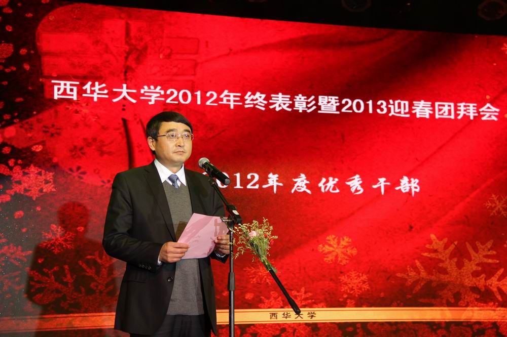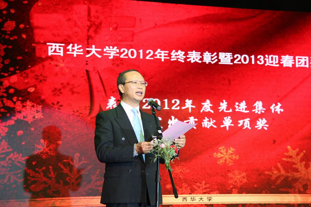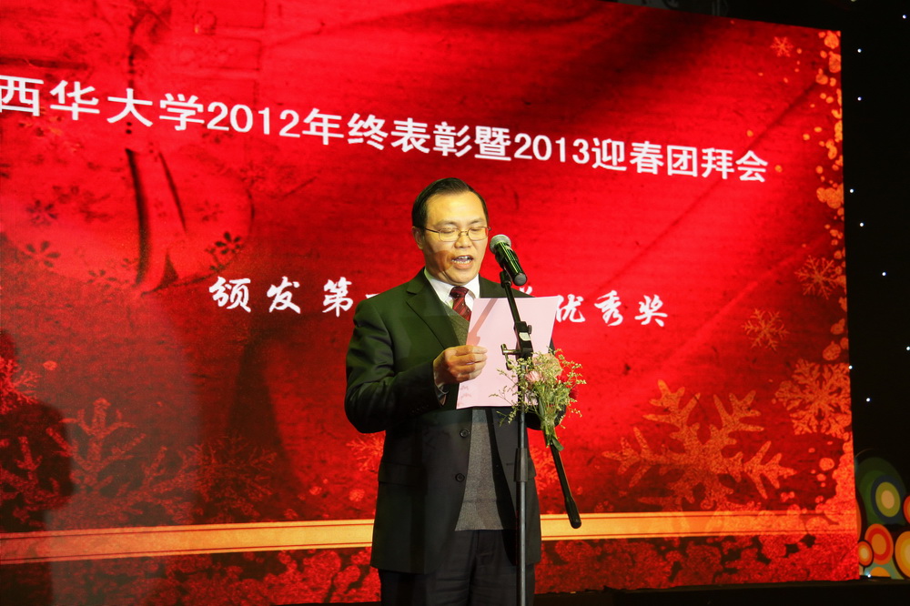 “龙腾祥云门接福,蛇吐瑞气户迎春”。1月17日晚,校学生活动中心张灯结彩,喜气洋洋,全体校领导、校级干部,副处级以上中层领导干部、学院分工会主席,离退休校领导,四川省和成都市党代表、人大代表、政协委员,省文史馆馆员,民主党派主要负责人、侨联、台谊会主要负责人及教师代表、职工代表和西华社区代表等共300余人,满怀对2013年的美好期盼,齐聚一堂,欢度一年一度的年终表彰暨迎春团拜会,共话奋斗历程,共享成功喜悦。 校党委书记张小南作了热情洋溢的致辞。他代表学校党政向全校师生员工致以亲切的问候和新春的祝福,向为学校事业辛勤付出的教职员工和一直关心学校发展的老同志致以由衷的感谢和深深的敬意! 在总结回顾2012年的学校工作和取得的成绩时,张书记指出,在过去的一年,西华人坚持走内涵式发展道路,教育教学改革不断深化,教学基本条件得到进一步改善;坚持特色发展战略,学科平台建设大有起色,学科特色明显增强;坚持开放办学,科研重要指标大幅提升,服务地方作用不断增强;坚持把人才队伍建设作为基础性、战略性工程抓好抓实,人才队伍建设水平不断提高;坚持以人为本,民主治校,学校管理规范有序,民心工程顺利推进,学校发展呈现出新的良好态势,社会声誉不断提升。 张书记强调,2012年的成绩来之不易,得益于全体教职员工的实干精神,得益于全体西华人的精诚团结。实干兴校,实干强校,新的一年,要以党的十八大精神为指引,坚持党的群众路线,全面贯彻落实科学发展观,继往开来,乘势而上,围绕学校重点工作攻坚克难,进一步解放思想、求真务实、抢抓机遇,踏踏实实地做好2013年的各项工作,以奋发有为的精神面貌开创学校事业科学发展的新局面。 视频短片《幸福的2012年》简要回顾了学校2012年的主要工作和取得的主要成绩,拉开了团拜会帷幕。晚会节目精彩纷呈,内容丰富、形式多样,不仅有学生的精彩表演,老师们也纷纷登台献艺,用歌声、舞蹈抒发了他们心中的喜悦和幸福。活力四射的拉丁舞,视听逼真的动画电影《马达加斯加》现场外文配音表演,经典动听的钢琴小提琴合奏《梁祝》、《新春乐》,富有民族特色的四川民族歌舞团、“成都卡兰美朵音乐林卡”旗下的康巴汉子组合演唱的《康定情歌》、《美丽家园》以及舞蹈《酥油飘香》、《放飞》等一个个精彩的表演,表达了对来年的美好期盼与祝福,特别是学院书记和老师们联袂带来的歌曲串烧《相亲相爱一家人》把整个晚会推向了高潮,现场掌声不断,笑语连连。 晚会现场,学校举行了隆重的颁奖仪式。校长孙卫国宣读了2012年度学校先进集体奖、突出贡献奖获奖名单,校党委副书记王小林宣读了2012年度学校优秀干部名单,副校长何建平宣读了学校第一届教学优秀奖名单。全体校领导为获奖单位和个人颁奖。 在今年的迎春团拜会上,tyc41183太阳成集团新浪官方微博现场直播与网络互动成了晚会的又一道风景,场内外的同学们通过tyc41183太阳成集团新浪官方微博、短信等向老师们发来祝福,老师们通过微博表达了对学校发展的美好祝愿。 最后,在老师们的热情欢呼声中,张书记、孙校长为6位幸运观众抽奖,再次掀起晚会高潮。伴着优美的旋律和美妙的歌声,参会老师相互致意,互赠祝福,持续近两个小时的2012年终表彰暨2013迎春团拜会圆满结束。