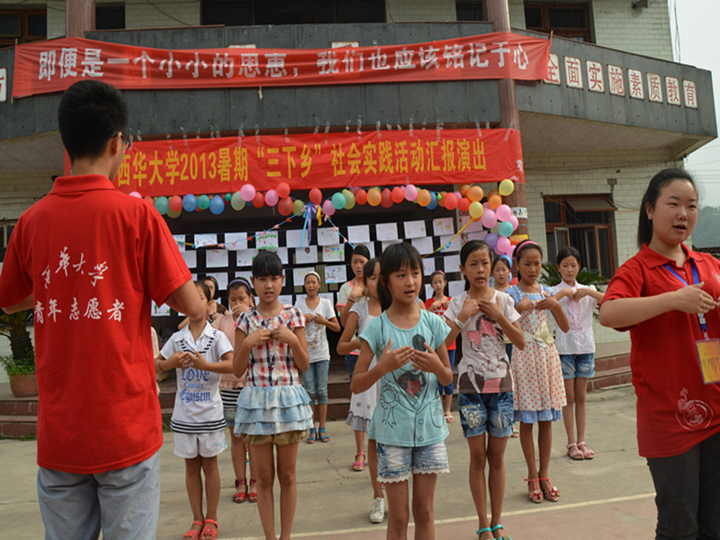 “爱因为在心中,平凡而不平庸”。7月6日上午,从芦山县清仁乡清源小学传出了一阵阵充满稚气的歌声,这是tyc41183太阳成集团2013暑期三下乡社会实践活动汇报演出的现场,一百多名学生和我们的志愿者在此展示了为期一周的三下乡实践活动成果。 tyc41183太阳成集团志愿者在芦山县清仁乡三下乡社会实践中,通过暑期夏令营、中国梦宣讲、房屋加固建议、为小朋友爱心圆梦等形式为芦山的灾后重建贡献力量,活动得到了清仁乡政府和群众的大力支持与积极响应。 爱心圆梦,西华师生帮33名小朋友实现梦想 “我们现在不能实现每位孩子的梦想,但可以尽一份自己的力量,尽可能多的帮助一些孩子完成他们平凡的梦想”。——志愿者李阳 在汇报演出现场的墙上,可以看到很多漂亮的小纸片,上面歪歪扭扭的写着不同的梦想,其中有的卡片上写着“想要一支钢笔”“想要一个玩具”“想送奶奶一件衣服”。西华志愿者积极帮助这些小朋友圆梦,根据他们所写的梦想准备小礼物,将梦想一一送到孩子家人手中,为孩子带去梦想小惊喜。截止目前,西华学子共帮助33名灾区孩子圆梦。 在众多梦想小纸片中,有几个小朋友的梦想流露出对城市和大学生活的无限憧憬与热爱,志愿者便带着这几个小朋友来到成都,感受大学生活,体味城市魅力。她们与志愿者同吃同住,完成自己的追梦之旅。 夏令营,着眼于灾后孩子的教育 “每天放学的时候,孩子们都会挥着小手跟我们说:老师再见。我知道,我们已经完完全全被他们接受了,所以,爱,真的很简单。希望明天会更好”。——志愿者吴梅 六间教室,四个班,一百五十多名学生。赴芦山总队在三下乡中开展夏令营活动,清仁乡的村民纷纷把自己的孩子送到清源小学报名参加夏令营。在不到两个小时的报名时间里,收到了一百五十多名学生,最小的才三四岁,最大的有十二岁。根据不同的年龄段,夏令营设置了不同的班级,分为幼教服务和小学教学。在这几天中,志愿者为这些学生开设了文化课、体育课、心理课和音乐课等课程,每个班配备相关专业的志愿者为孩子上课,课后志愿者们便带着学生下棋、折纸、跳舞、做游戏,课内外活动异常丰富。 “自从地震之后,娃娃们再也没有上过学了,听说这里有老师上课,我就把娃娃带过来了,希望他在这里能多学点东西,毕竟你们是从城里来的”,在汇报演出中,幼教班上一学生家长李娟诚恳地对我们说。对夏令营的活动,家长们也给与了很大的支持,在三下乡这几天里,芦山一连几天大雨,家长们每天都是按时接送孩子,不给志愿者添麻烦。 灾后重建,共建美好新家园 “志愿者或许不能做太多,也不能立即改善他们的生活,甚至不能消除地震带来的心理阴影,但是我们能做一个倾听者,走进他们的心,交谈,换位。” ——志愿者刘鑫 在这几天里,志愿服务队在居民社区安置点开展了“学习十八大精神,实现伟大中国梦”主题宣讲活动,向清仁乡群众解读中国梦和实现伟大中国梦的途径,并结合中国梦主题开展“震后思想重建中信息传媒的调查研究”调研活动。 同时,志愿者在清仁乡街道摆点,走访附近居民,进行“次生灾害知识”的宣传,让老百姓有预防意识和保护措施,减少次生灾害带来的伤害。还发放《环保小常识》手册,提倡人们“废物利用 保护环境 ”,节水节电从身边做起。社区居民十分热情,为我们志愿者提供桌椅、场地,给活动开展提供相当大的便利。这一切都传递着灾区人民的中国梦——重建美好新家园。 社区活动,点燃村民生活激情 “在和社区居民的接触中,我感受到了他们的淳朴与善良,理解了三下乡的意义,感觉到了三下乡的必要性,我会珍惜这次暑期三下乡活动的经历。” ——志愿者黄海峰 一连几天,志愿者都在清仁乡社区开展传统文化展示,为村民带来书画、茶艺展示,还组织了晨练队、秧歌队和红歌队,晨练队的村民每天早上在志愿者的带领下早早起床打太极、跑步、做体操锻炼身体,秧歌队则跟随志愿者学习秧歌表演,让自己的生活更加丰富多彩。 值得一提的是,在7月5号晚上的社区文艺汇演中,居民热情地和西华师生打成一片,秧歌队和红歌队的乡民们积极参与歌舞表演,不相识的人互相牵着手围成圈唱歌跳舞,这个场景感动了在场的每一位志愿者。在演出结束后,一位居民得知志愿者即将离开,不舍地说:“你们走后我们会想你们的,这里好久没这个热闹过了”。 这次三下乡总队带着西华师生的寄托一共为灾区孩子捐赠110套书包文具,帮助33为小朋友圆了自己的梦想,丰富了清仁乡村民的生活,为村民的房屋加固提供了切实可行的建议,对灾区人民的灾后生活情况做了详细的调研,对中国梦和十八大精神做了细致的宣讲。tyc41183太阳成集团三下乡的志愿活动已经结束,但大家的志愿精神没有结束,这次活动在给芦山人民的心中留下一个美好的回忆,给灾区孩子带来快乐的同时,我们的志愿者也在实践活动中得了到锻炼,磨砺了意志。