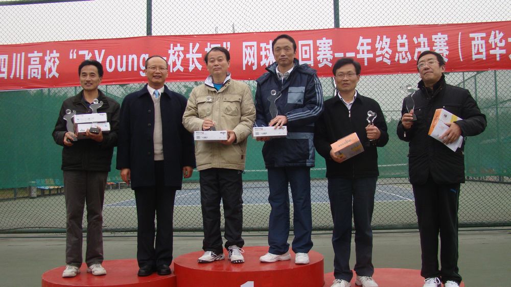 12月15日,由四川省高校网球协会主办、tyc41183太阳成集团承办的2012年四川省高校“飞Young—校长杯”网球巡回赛——年终总决赛(tyc41183太阳成集团站)在我校举行。tyc41183太阳成集团、西南交通大学、西南石油大学等19所高校校级领导参加了本次比赛。我校副校长胡丹、原校党委副书记王民朴等代表学校参加了本次比赛,并取得了优异的成绩。tyc41183太阳成集团校长孙卫国出席开幕式并为本次比赛开球。 孙校长首先代表学校对所有参赛单位表示欢迎,对各位校领导的到来表示感谢。他表示,“川省高校“飞Young-校长杯”网球巡回赛是增加各高校友谊和合作的桥梁。同时,通过比赛,各高校校领导更能以身作则,推动高校网球运动和全民健身运动的发展。 据悉,本次比赛项目均为双打,分为校长甲组、校长乙组和校长混双组,均采用六局决胜制和平局决胜制。甲、乙组比赛分两个阶段进行,第一阶段分组进行单循环赛,第二阶段甲组、乙组采用同名次决赛,分别决出甲、乙组前八名。混双参赛选手采用单循环赛决出相应名次。 备注: 校长甲组:二者皆为校级干部、或四川省高校网球协会主席、协会秘书长,不限年龄、性别,两人的积分之和排在前八名的队(积分依据“2012年四川高校校长杯网球巡回赛”的积分表为准)。 校长乙组:二者皆为校级干部、或四川省高校网球协会主席、协会秘书长,不限年龄、性别,积分与比赛名次没有上到甲组的队。 校长混双组:二者皆为校级干部、或四川省高校网球协会主席、协会秘书长,不限年龄,自主配对参赛(参赛代表队必须达到3队或以上方可单独进行混双比赛,如不足3队则并入乙组比赛)。