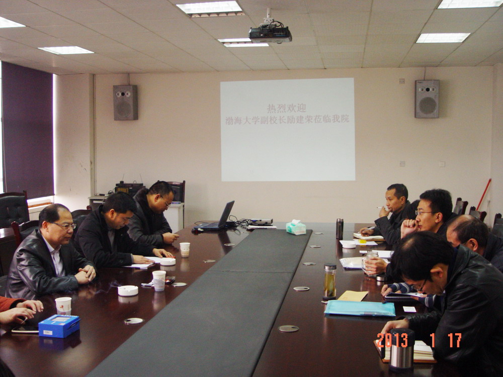 渤海大学副校长励建荣(右一)与教师座谈 |