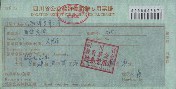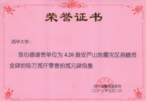 我校师生向芦山地震灾区的全部捐款已汇至四川省教育基金会