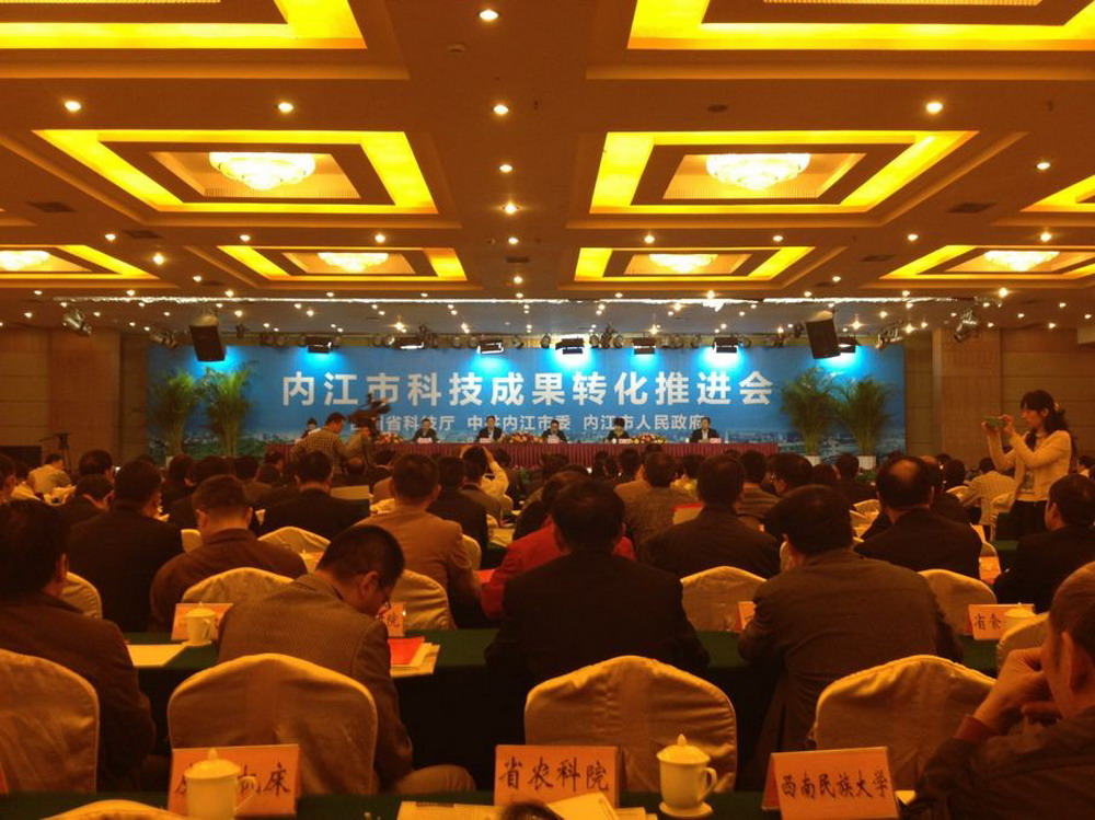 11月2日,内江市科技成果转化推进会隆重召开。省科技厅党组书记、厅长彭宇行,内江市委书记曾万明出席会议并讲话。省科技厅副厅长罗治平、副巡视员郑超英,市委常委、宣传部长潘梅,副市长潘国华,市政协副主席黄忠,来自包括tyc41183太阳成集团在内的国内外28所大专院校、科研院所、知名企业的负责人出席会议。