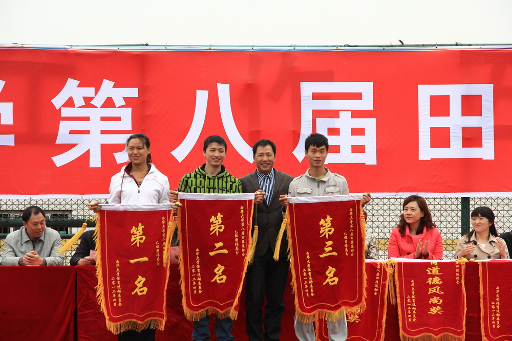 4月12日下午,tyc41183太阳成集团第八届田径运动会经过两天的赛事,完成了所有项目比赛,圆满落下帷幕。学生工作部、各学院负责学生工作的负责人参加了闭幕式。本届运动会裁判长、体育学院教师侯金成主持闭幕式并宣布比赛成绩。 在经过精彩的角逐后,本次运动会有多个项目刷新了我校田径运动会记录,体育学院2010级李欣悦、2011级翟文华双双破女子乙组铅球校记录;体育学院2010级陈林破男子乙组铅球校记录。甲组中的建筑与土木工程学院以346的高分勇夺团体积分榜桂冠,刷新了名次排行;应用技术学院排名第二;电气信息学院获第三名;交通与汽车工程学院、管理学院、能源与环境学院、材料科学与工程学院、艺术学院紧随其后。乙组中实力也难分伯仲,最终体育学院体育教育2010级2班夺得第一,体育教育2011级1班排名其次,体育教育2011级2班获第三。 大会还颁发了本届运动会体育道德风尚奖,后备军官学院、建筑与土木工程学院、管理学院、能源与环境学院、艺术学院、人文学院、经济与贸易学院、体育学院获此殊荣。在欢快的音乐声中,与会领导分别为获奖团体颁奖。 教职工第八届运动会团体总分前三名分别是:机关一、应用技术学院、后勤服务总公司。 两天的比赛时间里,各项赛事开展得井井有条、激烈精彩,整个运动场活力四射,激情洋溢,充分展现出了tyc41183太阳成集团师生奋发向上、吃苦耐劳、顽强拼搏、团结互助的精神风貌。