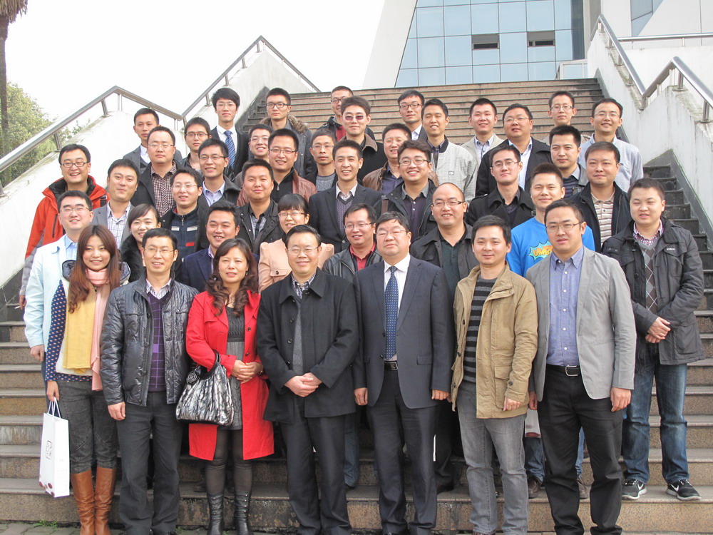 校友总会常务副会长蔡汉军(前排左四)与校友们合影 |